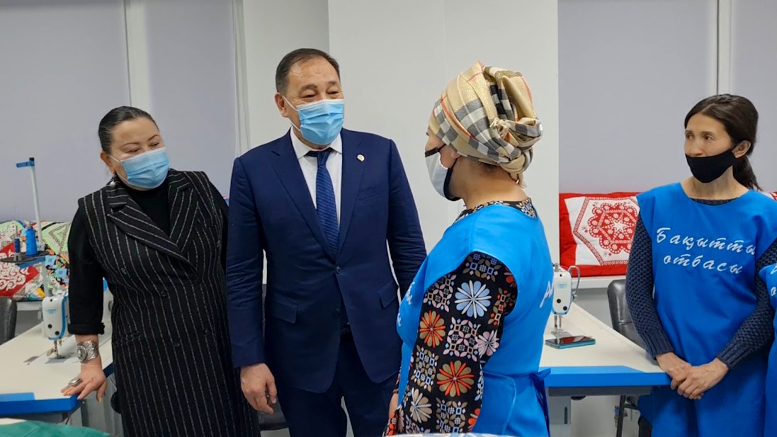During his visit Yeraly Tugzhanov got acquainted with the activities of the Center and discussed the main methods of work to support mothers of large families, single mothers, women raising children with disabilities, and training them in professions, organizing their employment. At the moment, more than 1,400 women are registered in the Center.
