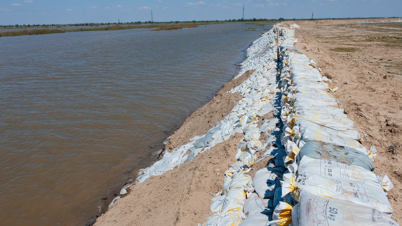 In Makhambet district there are 17 settlements along the river Zhaiyk. To protect them, 80 kilometres of bank protection dams have been constructed. Their total length in the district is 105.8 km. Flood control measures continue. 130 units of special equipment, 650 servicemen, more than 200 emergency workers, about 300 volunteers and local residents have been involved.