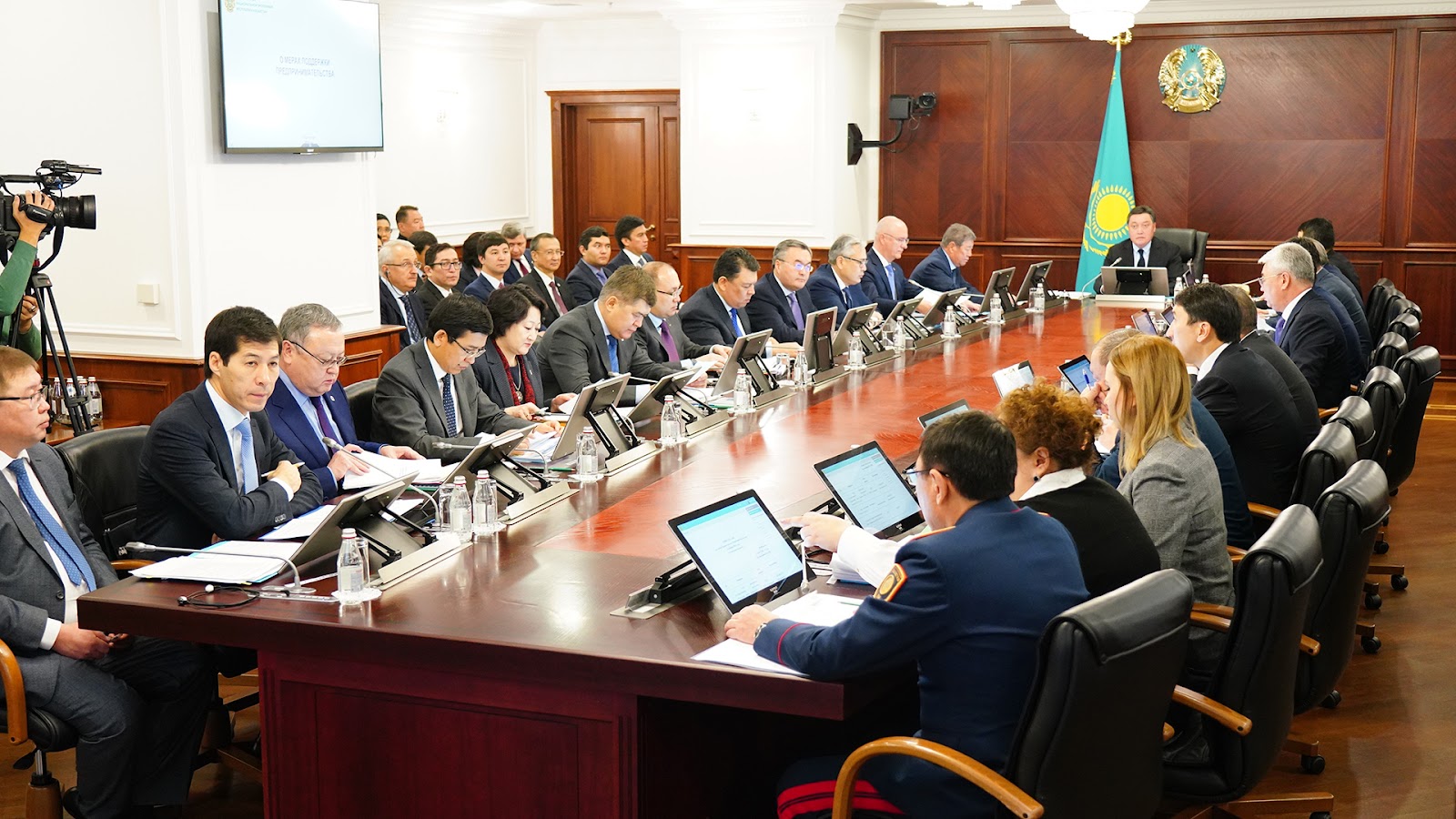 Бірінші мәселені қарау кезінде ҚР Премьер-Министрі А. Маминге шағын және орта бизнестің еліміздің ЖІӨ-дегі үлесі 2015 жылғы 28,4%-ға дейін өскені туралы баяндалды. Ал 2015 жылы бұл көрсеткіш 24,9%-ға тең болған.