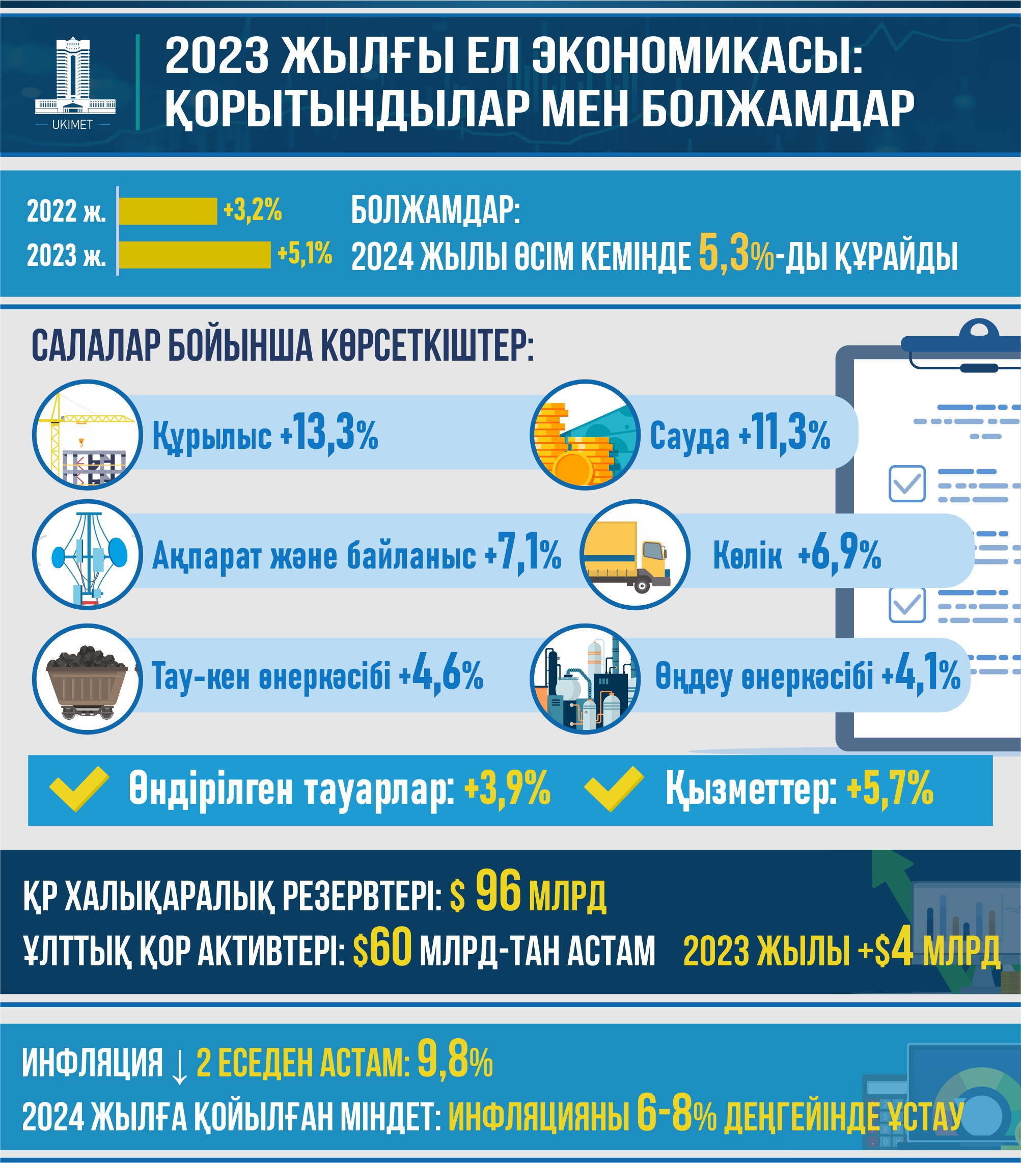 Үкімет 2024 жылы ел экономикасы кемінде 5,3% деңгейінде өседі деп болжап отыр
