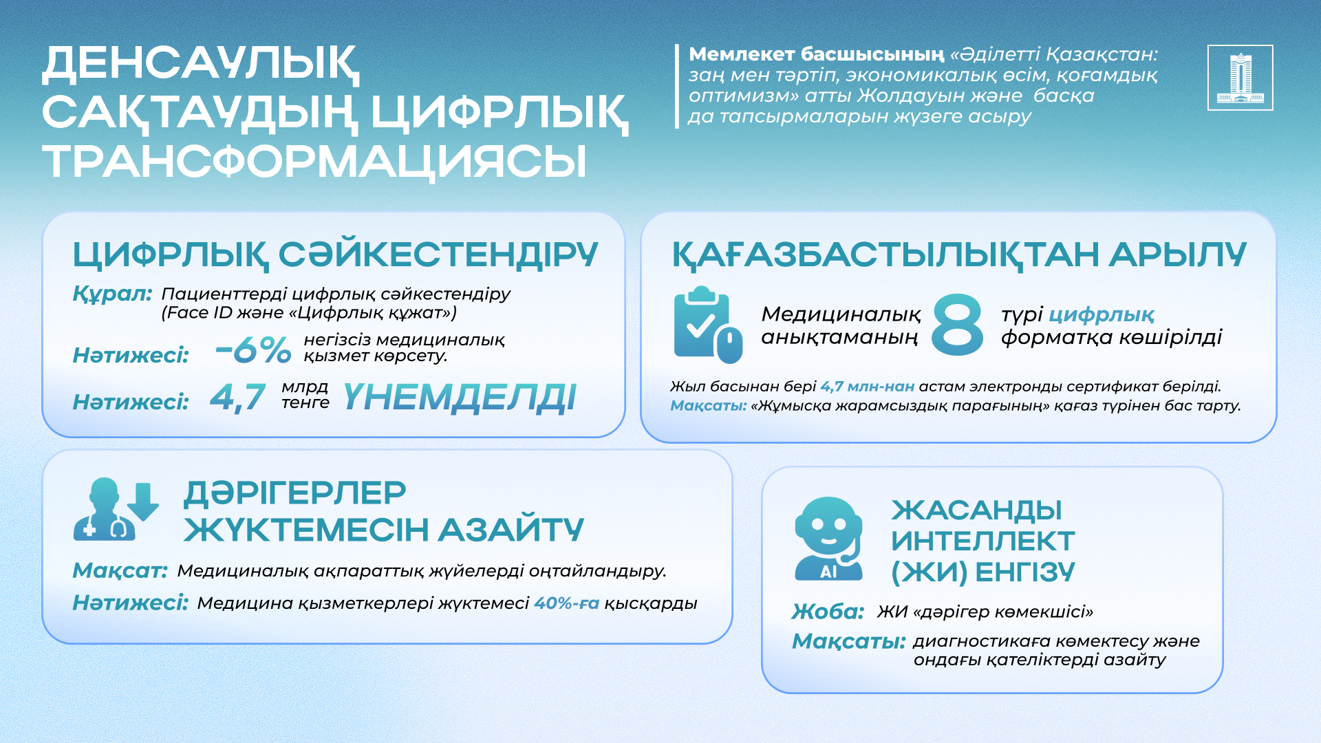 2024 жылғы Президент Жолдауын жүзеге асыру: Жүйелі реформалар еліміздегі медициналық көмек көрсету сапасы мен қолжетімділігін қалай арттыруда
