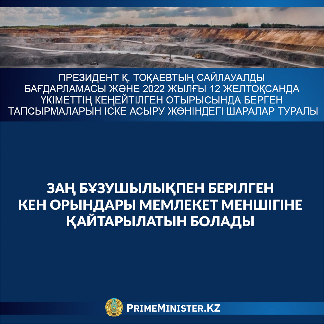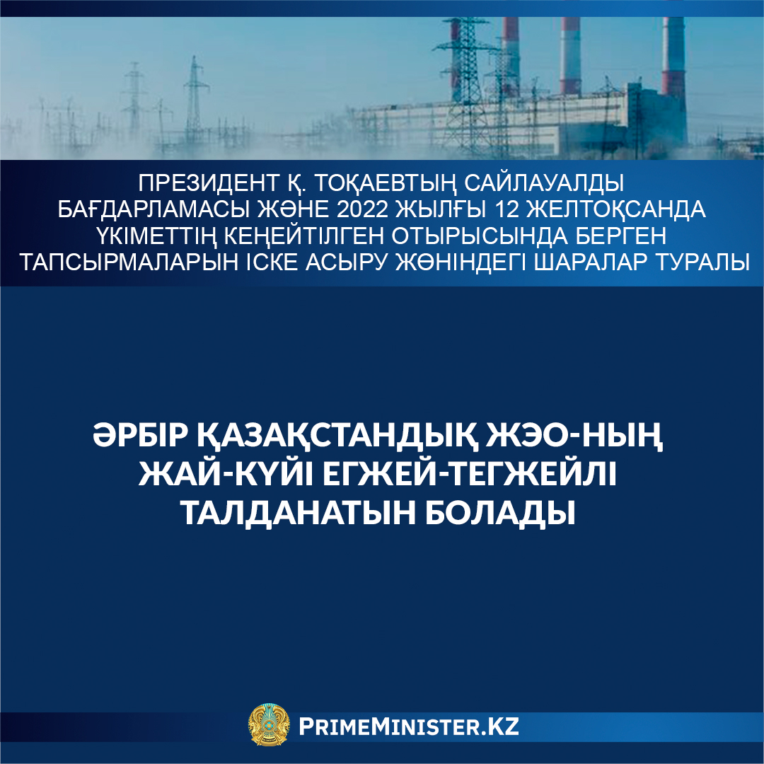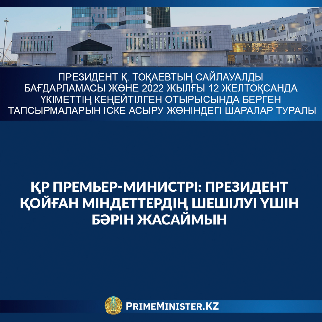 Президент Қ. Тоқаевтың Сайлауалды бағдарламасы және 2022 жылғы 12 желтоқсанда Үкіметтің кеңейтілген отырысында берген тапсырмаларын іске асыру жөніндегі шаралар туралы