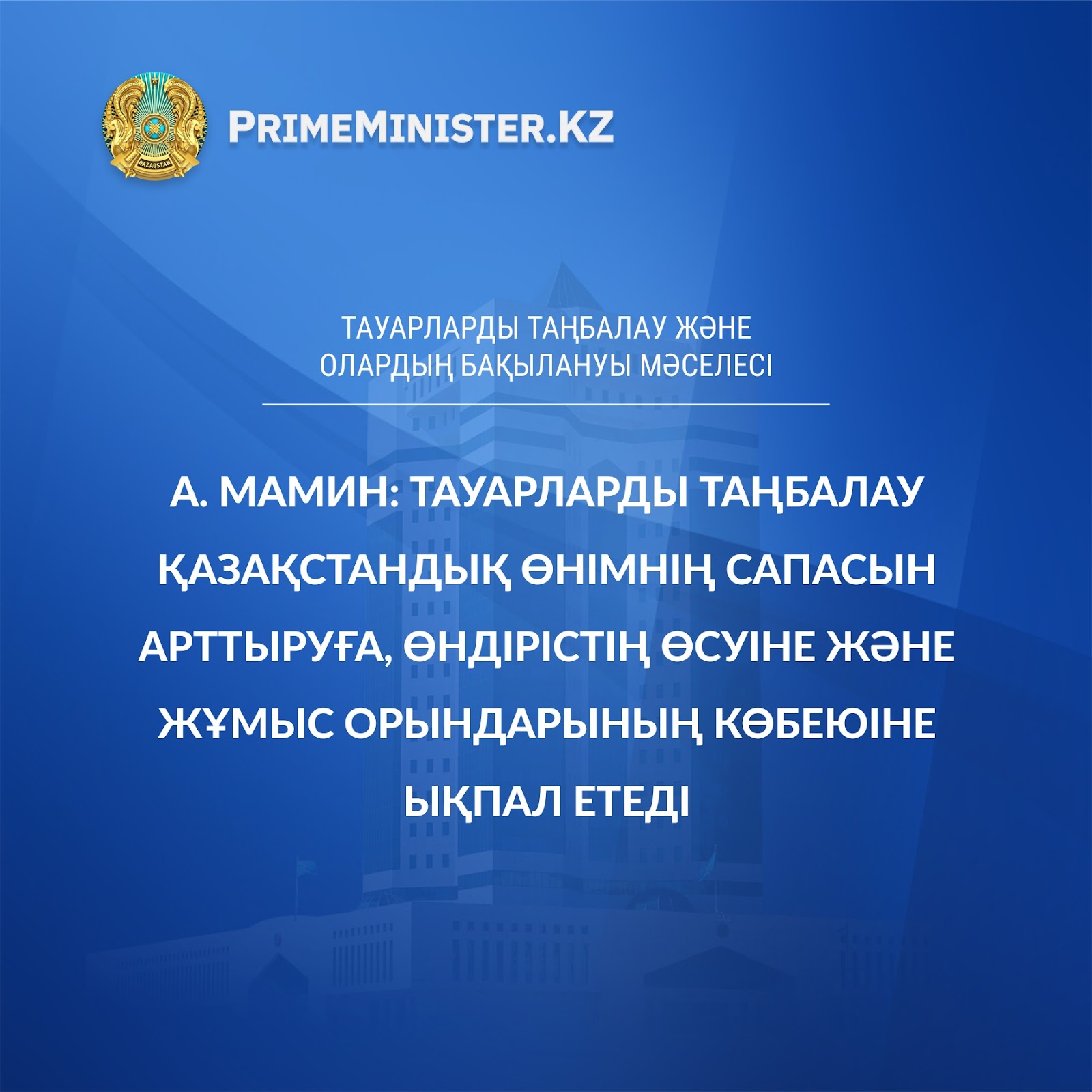 Қазақстанның Премьер-министрі мен Үкіметі жаңалықтарынан хабардар болыңыз — ресми Telegram-каналға жазылыңыз