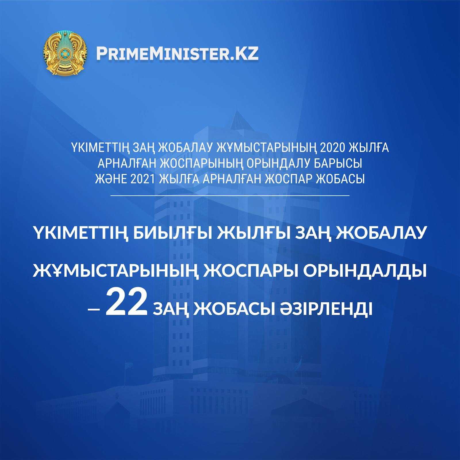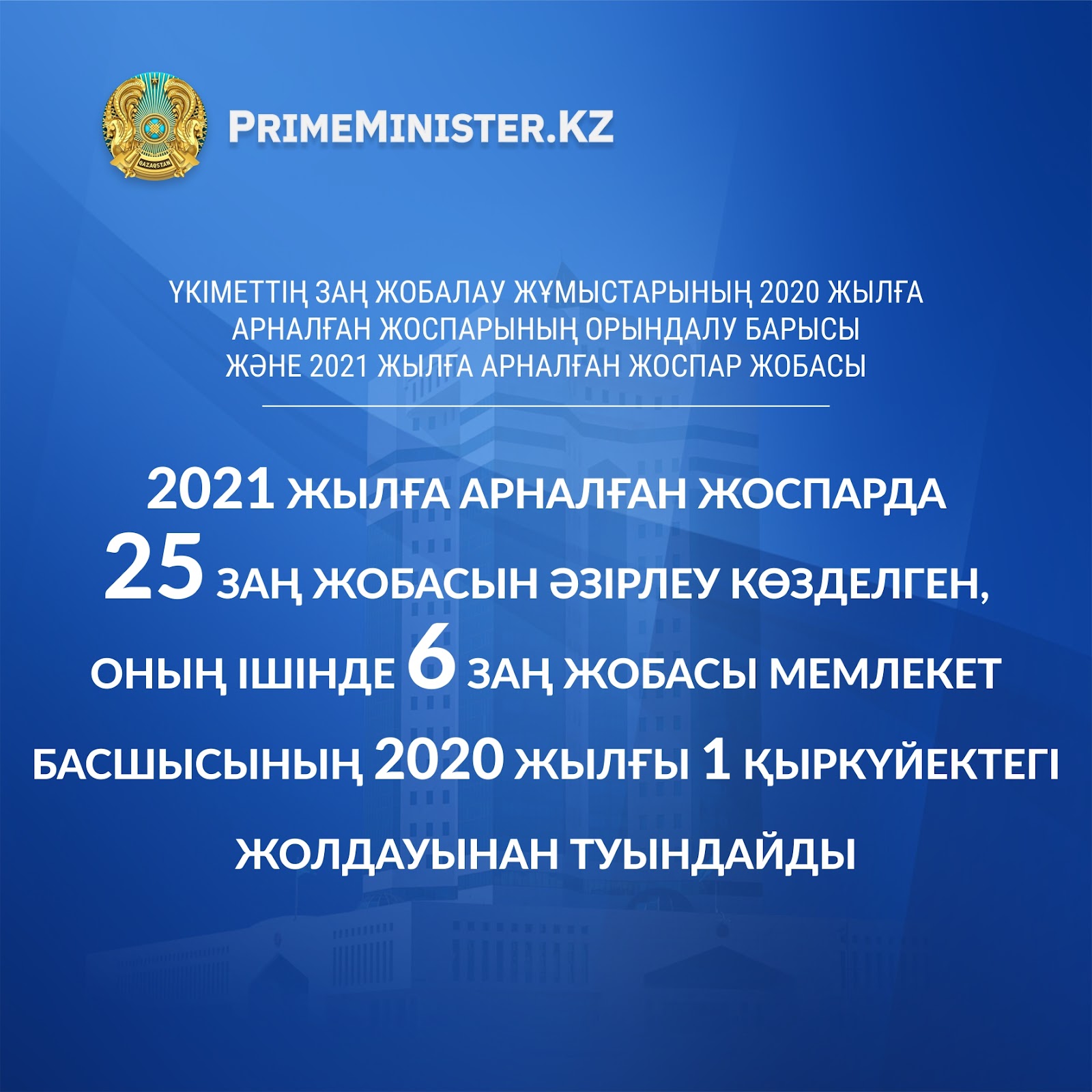 Үкіметтің заң жобалау жұмыстарының 2020 жылға арналған жоспарының орындалу барысы және 2021 жылға арналған жоспар жобасы
