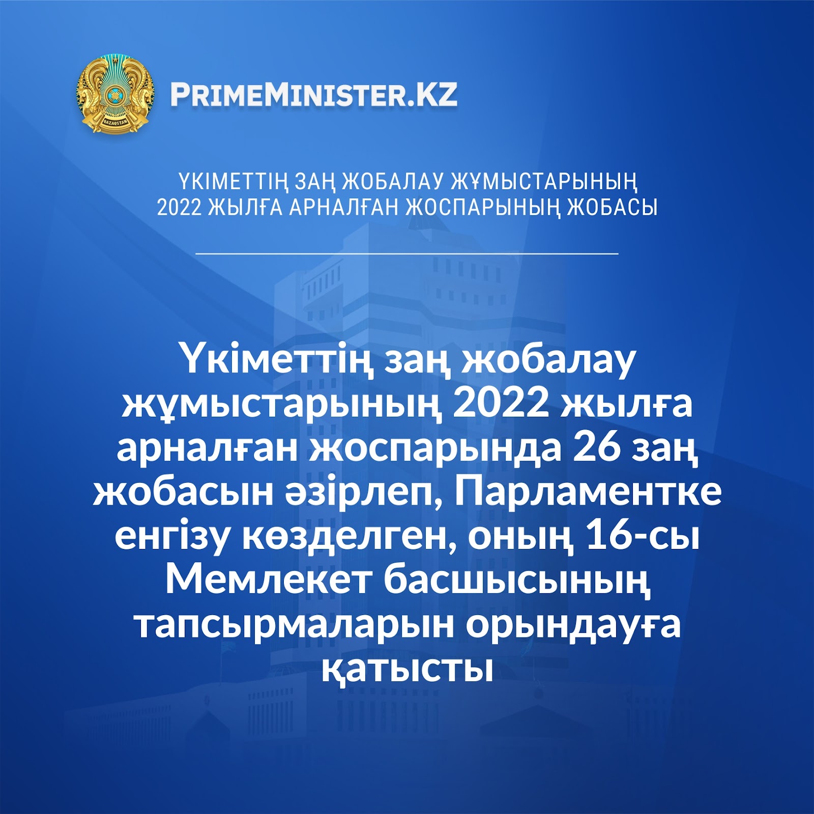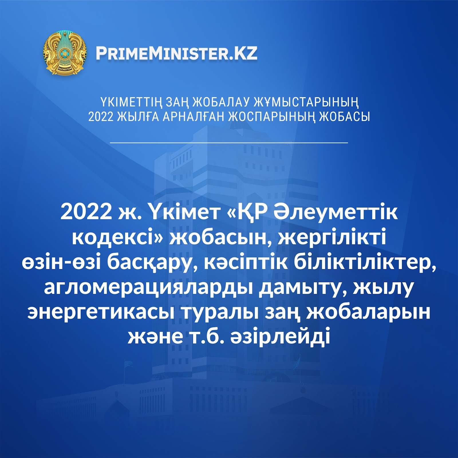 Үкіметтің заң жобалау жұмыстарының 2022 жылға арналған жоспарының жобасы