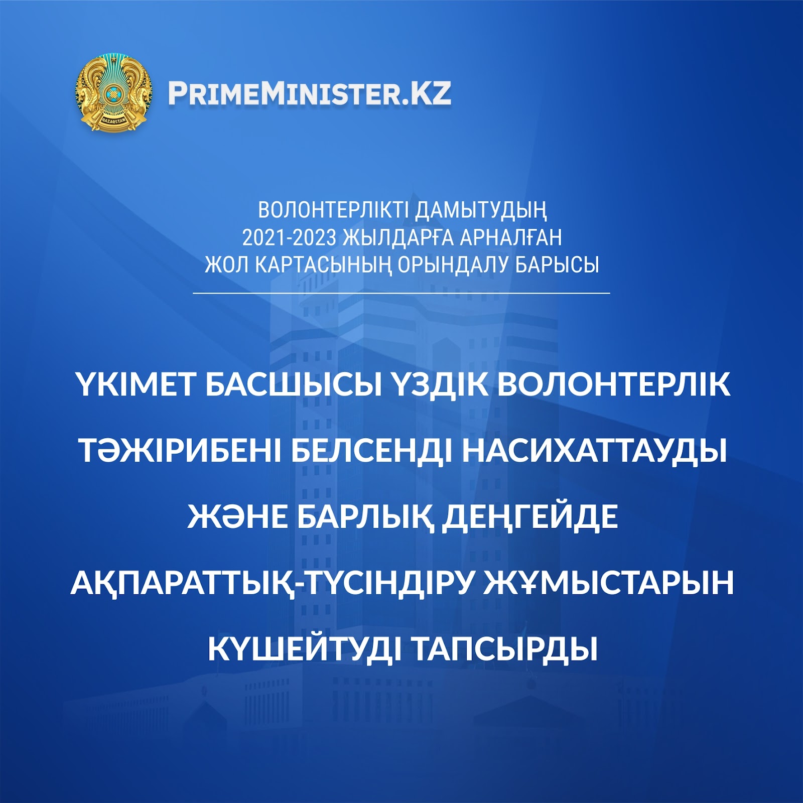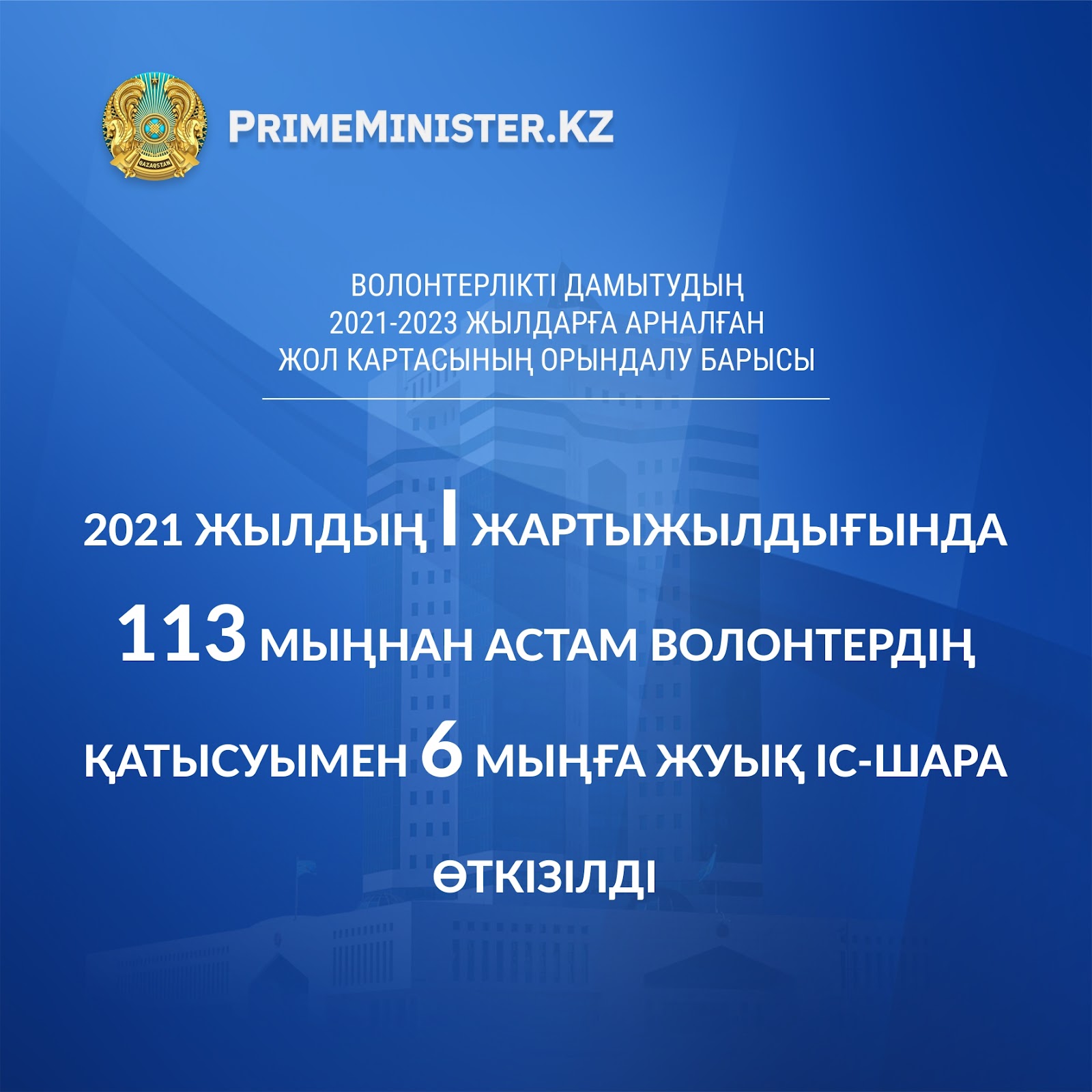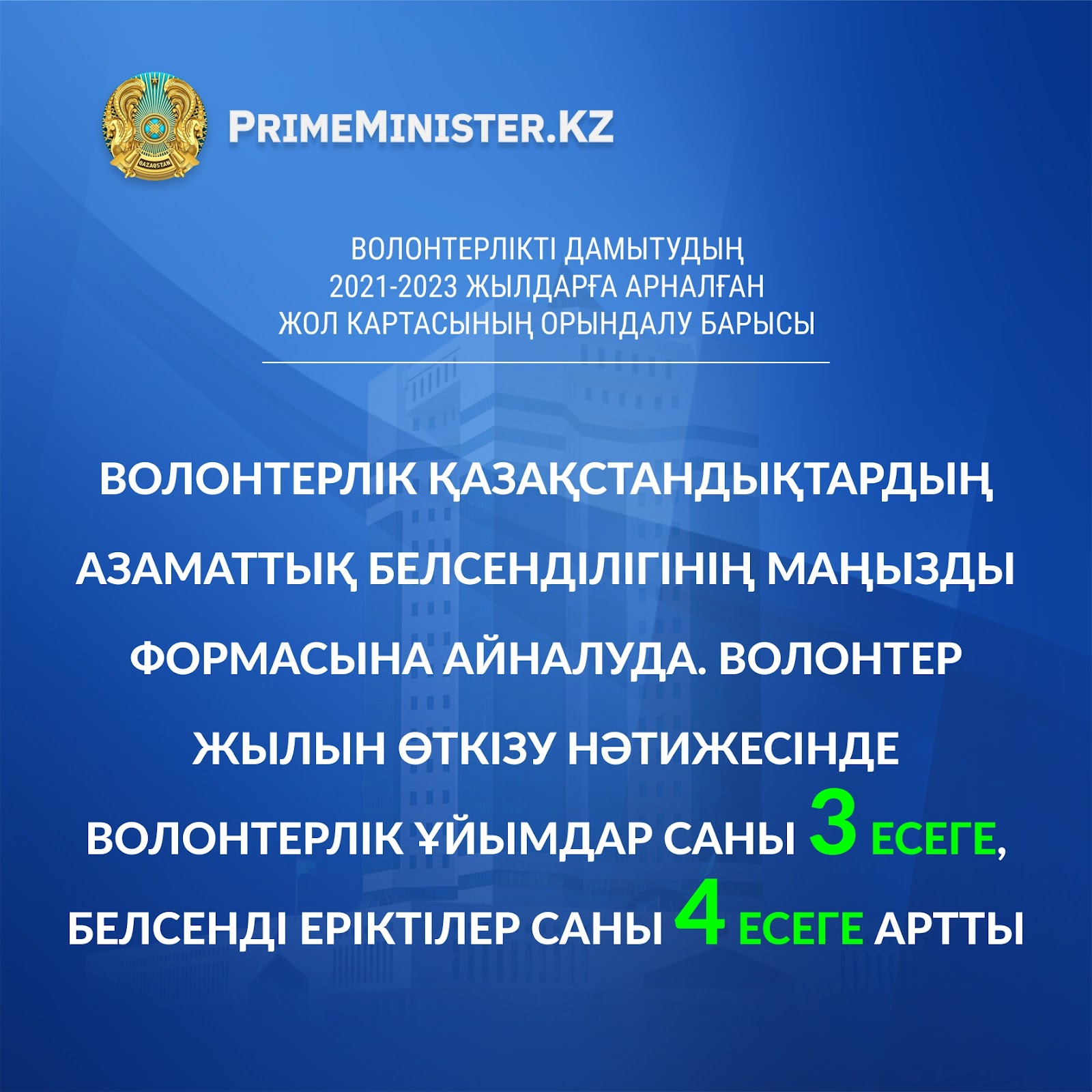 Волонтерлікті дамытудың 2021-2023 жылдарға арналған жол картасының орындалу барысы