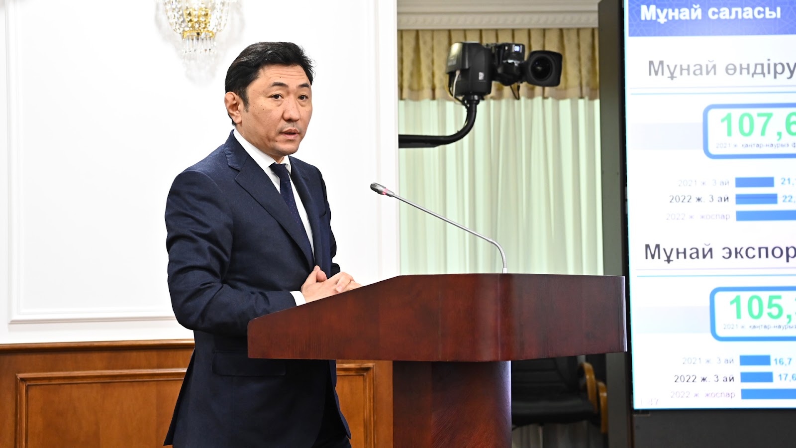 Энергетика министрлігінің басшысы Болат Ақшолақов мұнай-газ секторындағы жағдайға қатысты баяндады. Аталған кезеңде мұнай саласында мұнай өндіру және экспорты көрсеткіштері бойынша өсім байқалады. Алдын ала деректер бойынша, биылғы қаңтар-наурызда мұнай және конденсат өндіру көлемі 22,7 млн тоннаны немесе 2021 жылдың сәйкес кезеңіне 107,6%-ды құрады.