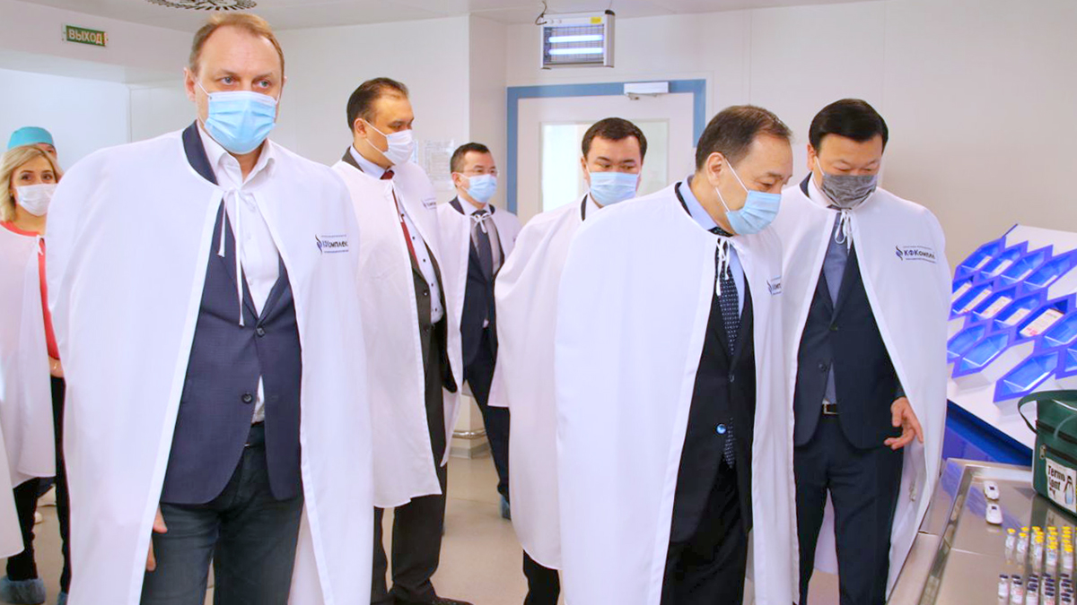 Бүгін ҚР Премьер-Министрінің орынбасары Ералы Тоғжанов пен ҚР денсаулық сақтау министрі Алексей Цой Қарағанды фармацевтика кешені (ҚФК) базасында «Гам-КОВИД-Гак» («Спутник–V») вакцинасының өнеркәсіптік өндірісі барысын және вакцинаның өңірлерге жеткізілуін тексерді.