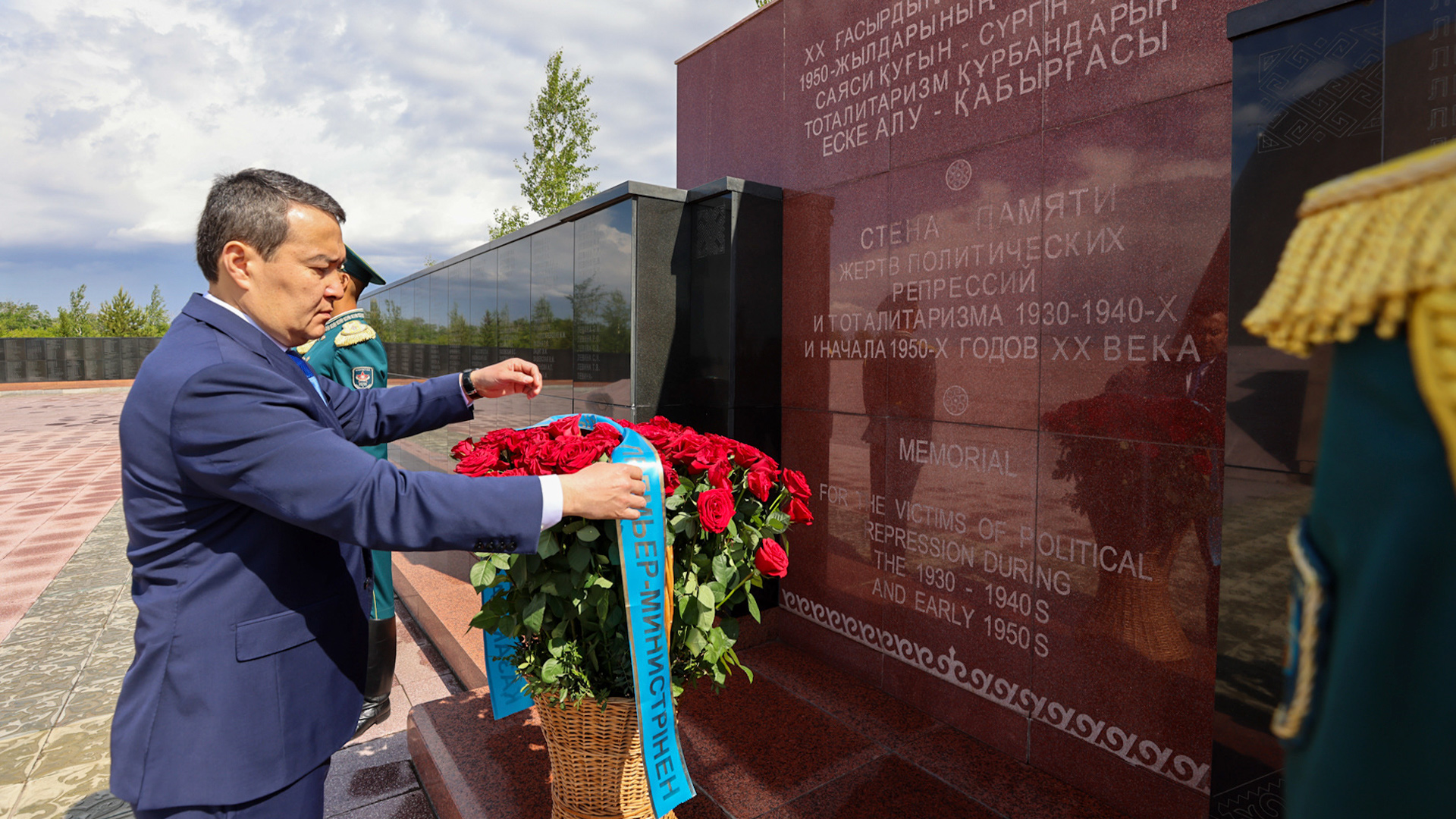 ҚР Үкіметінің басшысы Саяси қуғын-сүргін және ашаршылық құрбандарын еске алу қабырғасына гүл шоғын қойып, бір минут үнсіздікпен еске алды.