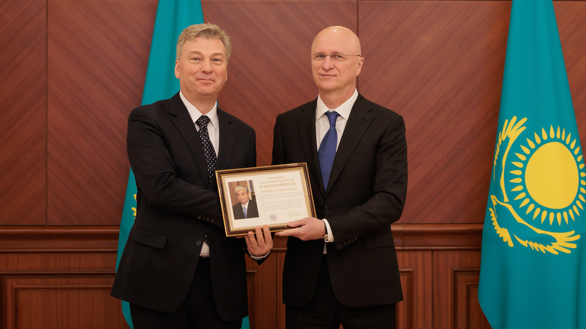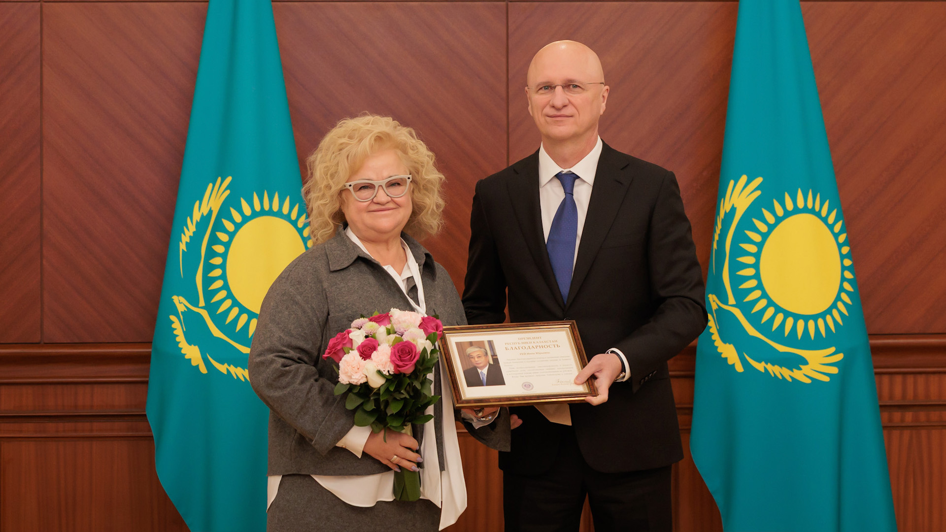 Мемлекеттік наградаларды Мемлекет басшысының атынан Қазақстан Республикасы Премьер-министрінің бірінші орынбасары Роман Скляр табыс етті.