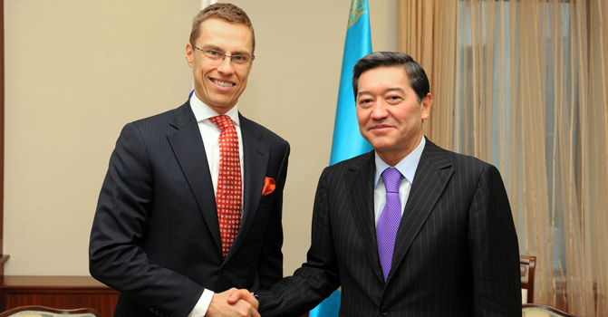 Ал А. Стубб өз кезегінде Финляндия Қазақстанның EXPO-2017 көрмесін өткізуге берген өтінішін қолдайтындығын жеткізді. «Астана - заманауи әрі жедел дамушы қала. Ал Қазақстанның экономикасы әлемдегі ең жылдам дамып келе жатқан үш экономиканың бірі және адам сенгісіз жетістіктерге жетті», - деді ол.