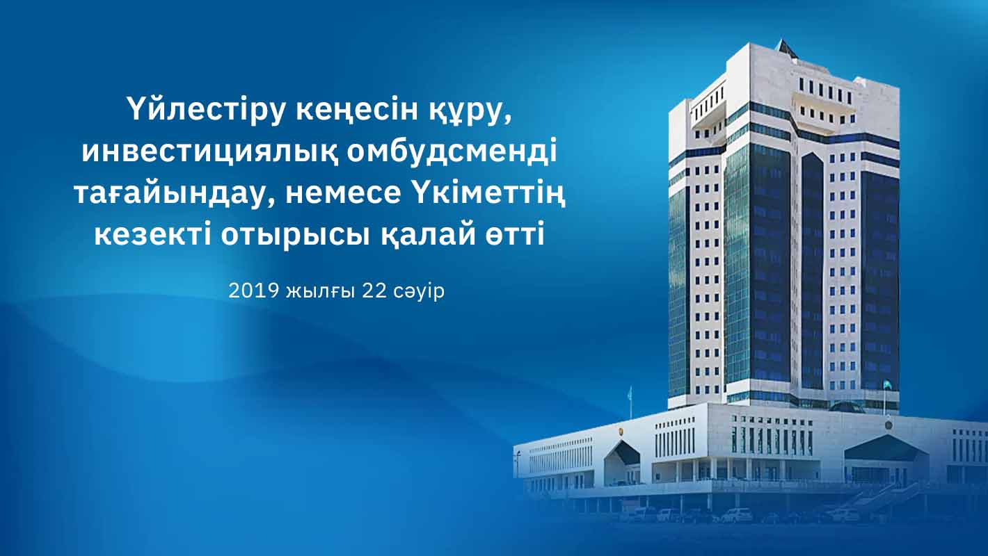 Үкіметтің кезекті отырысында ҚР экономикасына шетелдік инвестициялар тарту мәселелері қаралды. Қызықты сауалдарға жауап беру кулуарларда жалғасын тапты, ал отырыс тақырыбын талқылау баспасөз орталығы алаңында аяқталды, мұнда БАҚ өкілдерінің сауалдарына ҚР Премьер-Министрінің бірінші орынбасары – қаржы министрі Ə. Смайылов, АХҚО басқарушысы Қ. Келімбетов, ҚШИКҚ басқарма төрағасы А. Прейманис жауап берді.