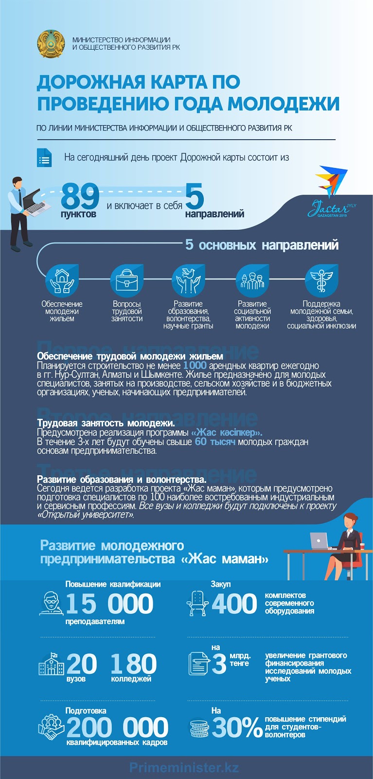 26 марта 2019 года на заседании Правительства под председательством Премьер-Министра РК Аскара Мамина одобрены дополнения в Дорожную карту по проведению Года молодежи.