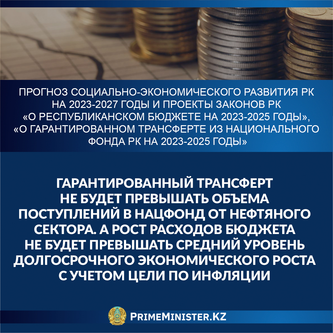 Прогноз СЭР Казахстана на 2023-2027 гг. и проекты законов РК «О республиканском бюджете на 2023-2025 гг.», «О гарантированном трансферте из Национального фонда РК на 2023-2025 гг.»