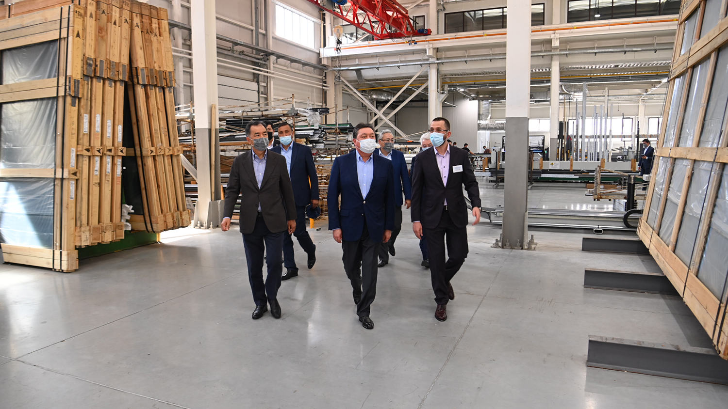 Глава Правительства также ознакомился с деятельностью завода по производству энергоэффективных архитектурных фасадов ТОО «КСМ ТехноВИД». Мощность предприятия составляет 475 тыс.кв.м энергосберегающих ПВХ и алюминиевых профильных конструкций в год. Современное автоматизированное оборудование для завода приобретено в рамках лизингового финансирования через АО «Фонд развития промышленности».