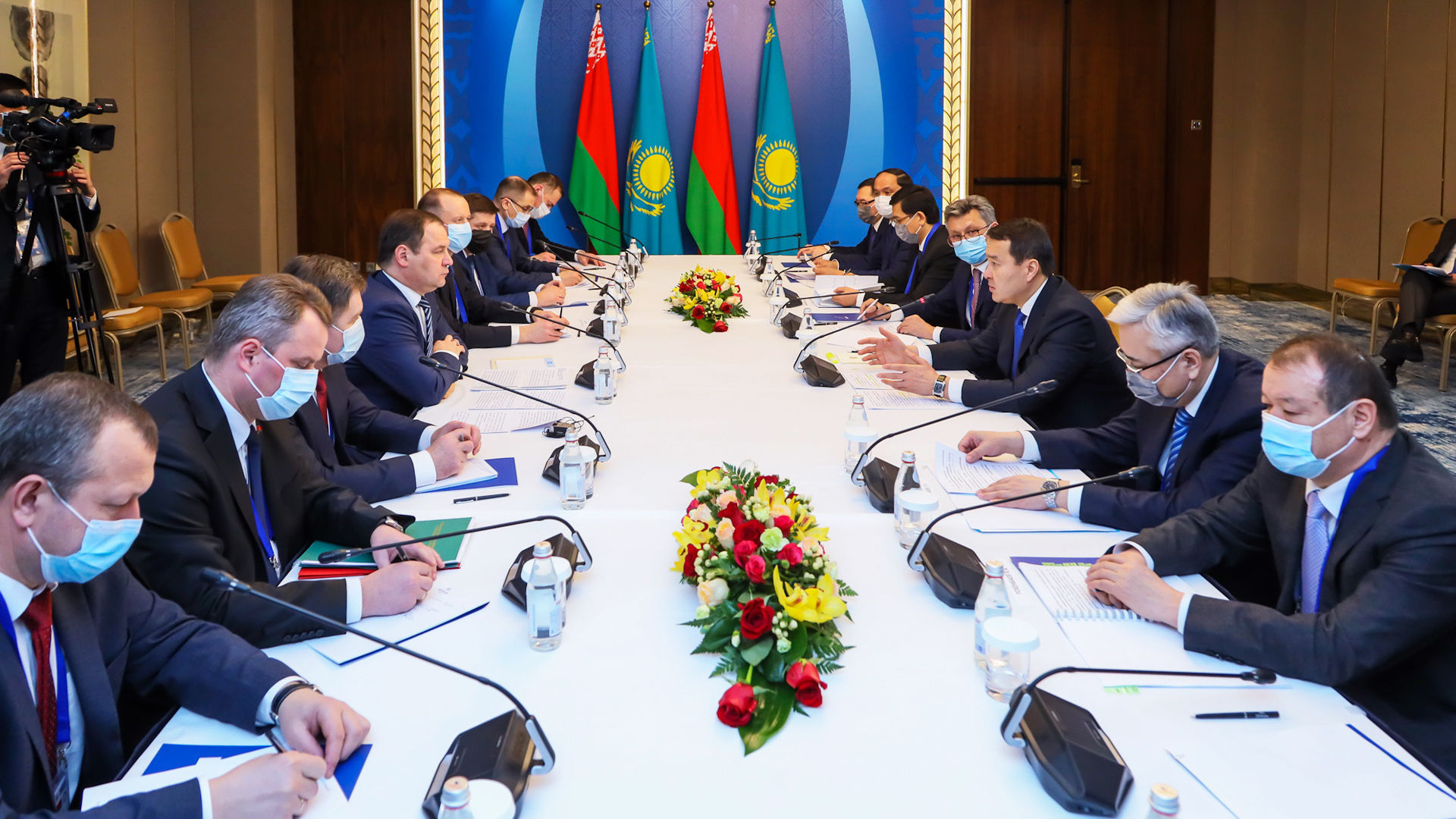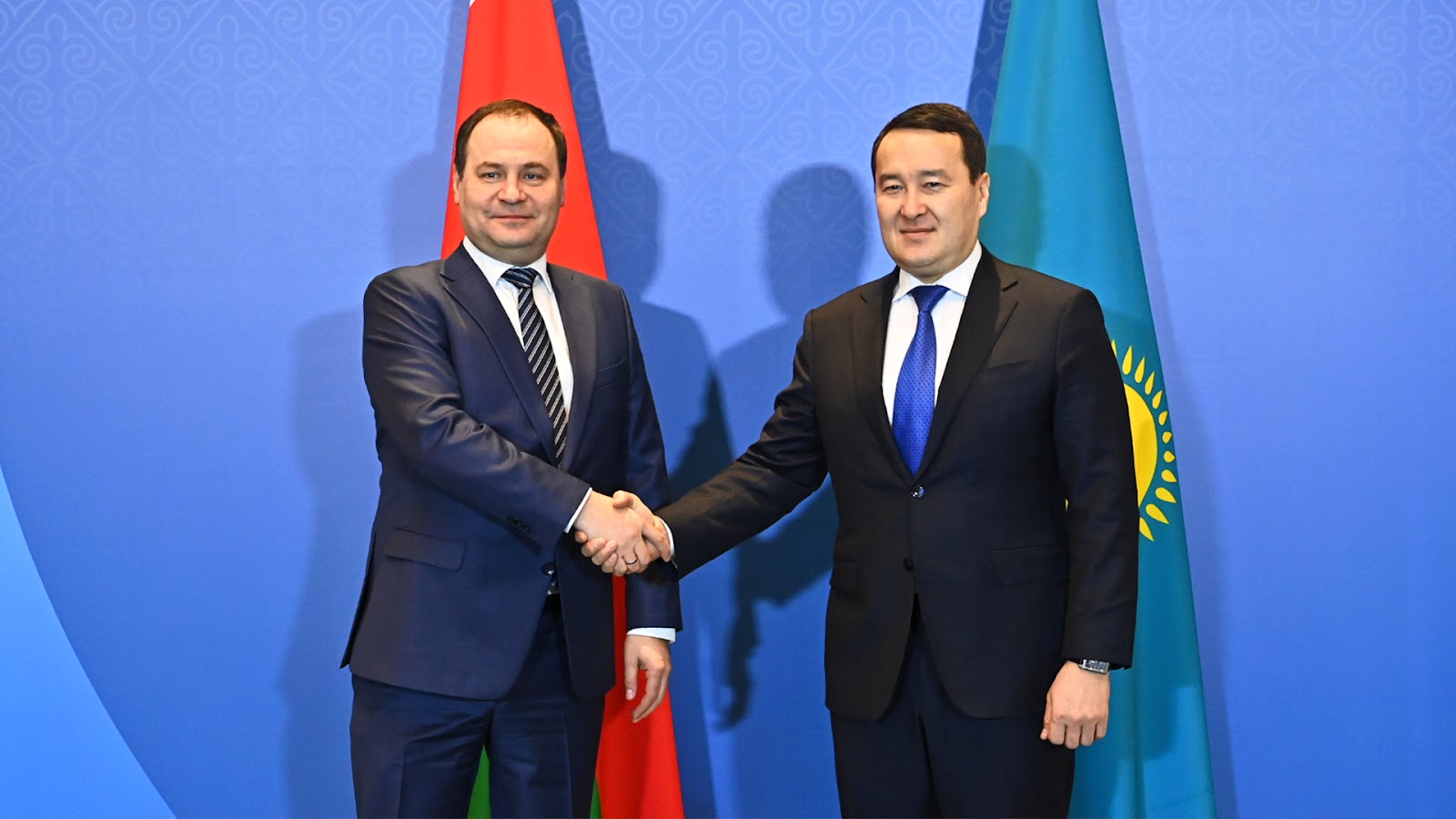 Премьер-Министр РК Алихан Смаилов в рамках заседания Евразийского межправительственного совета провел двусторонние переговоры с Премьер-Министром Республики Беларусь Романом Головченко.