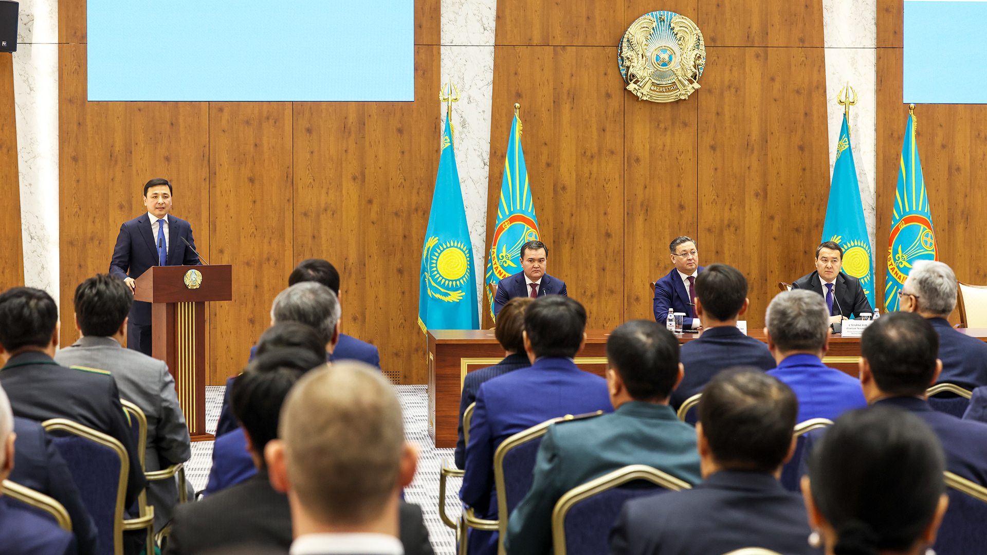 В Астане состоялось собрание депутатов маслихата с участием Премьер-Министра РК Алихана Смаилова и Руководителя Администрации Президента РК Мурата Нуртлеу.