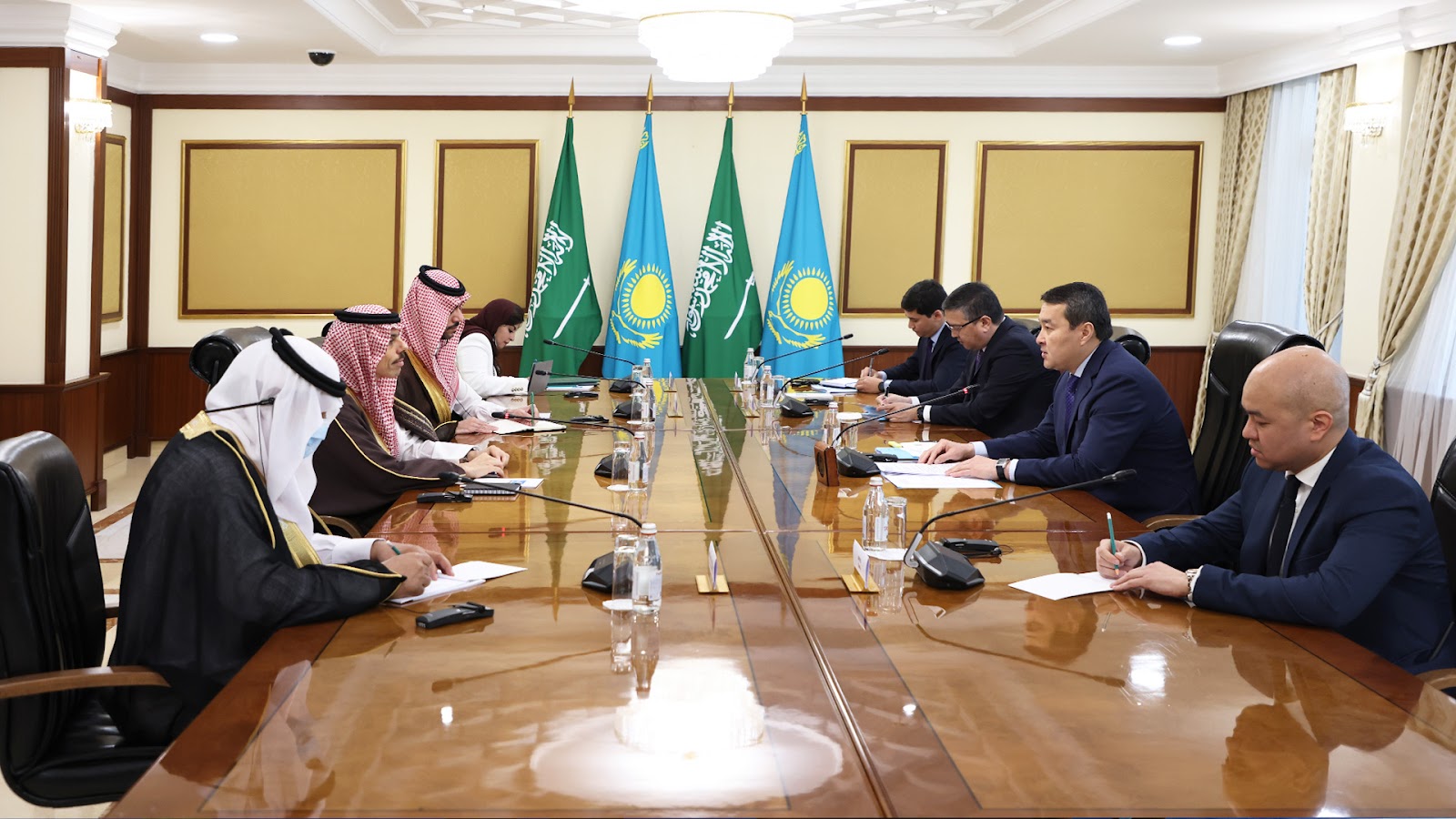 Премьер-Министр РК Алихан Смаилов провел встречу с министром иностранных дел Королевства Саудовская Аравия Фейсалом Бен Фарханом Аль Саудом.
