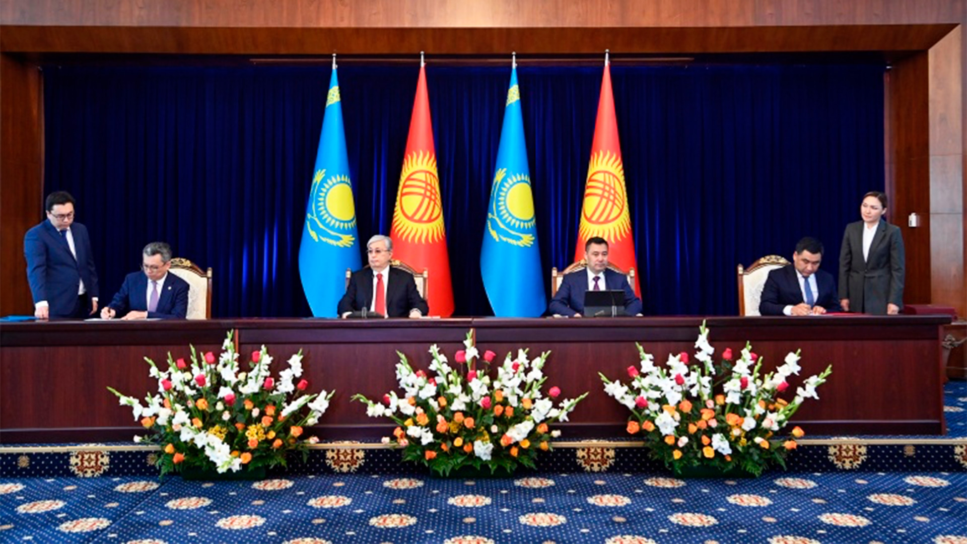 В рамках государственного визита Президента РК Касым-Жомарта Токаева в Бишкек заместитель Премьер-Министра – министр торговли и интеграции Бахыт Султанов и Первый заместитель Председателя Кабинета Министров КР Арзыбек Кожошев приняли участие в церемонии закладки капсулы на месте строительства ИТЛК «Алатау» в районе пунктов пропуска «Карасу» и «Ак-Тилек».