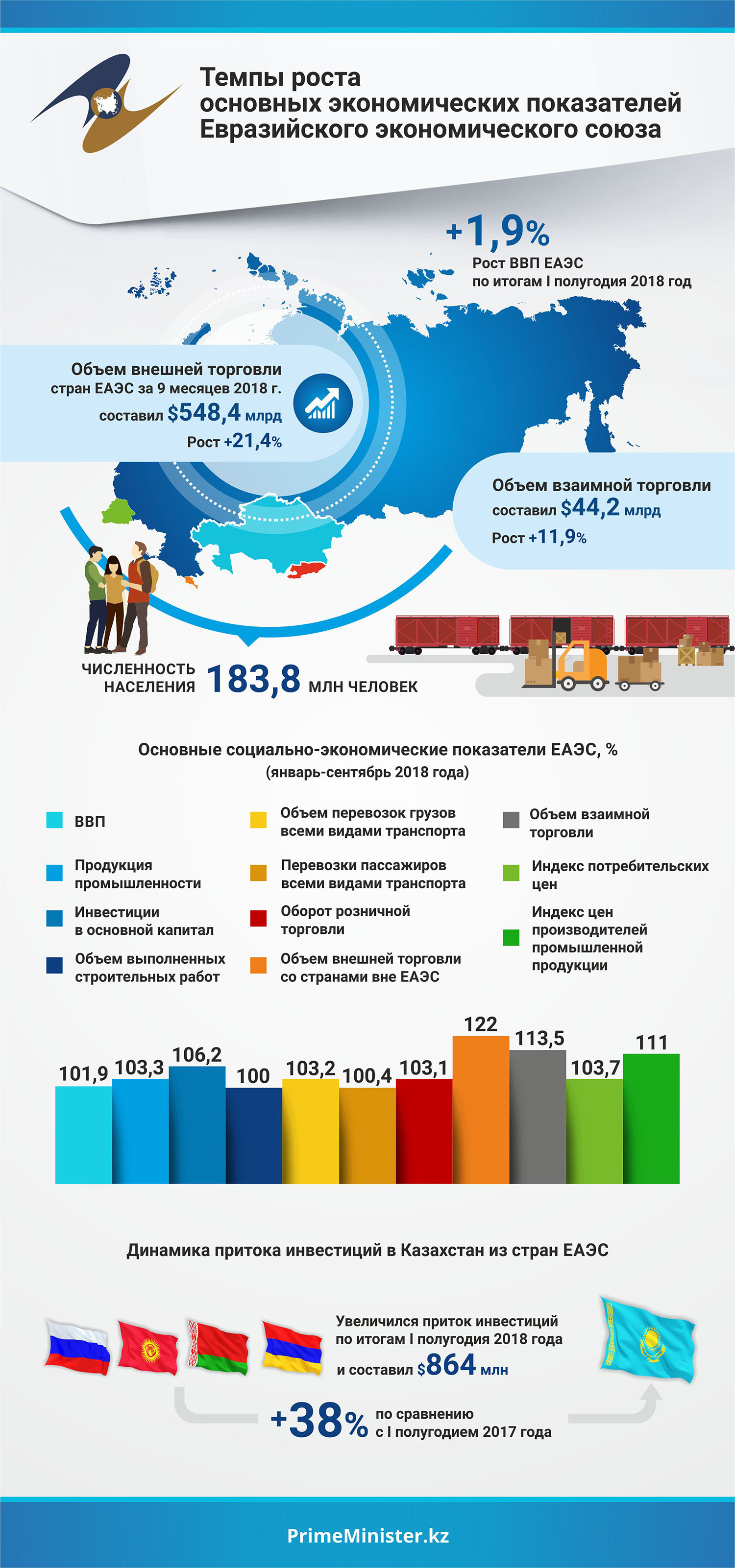 Кроме того, Б. Сагинтаев озвучил необходимость продолжения работы по выстраиванию торгово-экономических связей с основными партнерами и новыми растущими рынками. Это должно стать дополнительным импульсом для повышения роли ЕАЭС на мировом рынке. Здесь в качестве одного из наиболее перспективных треков видится выстраивание отношений с крупными международными организациями. К примеру, потенциал для сотрудничества с Европейским союзом: ЕС занимает значительную долю во внешней торговле стран-участниц ЕАЭС и данное взаимодействие нужно развивать.