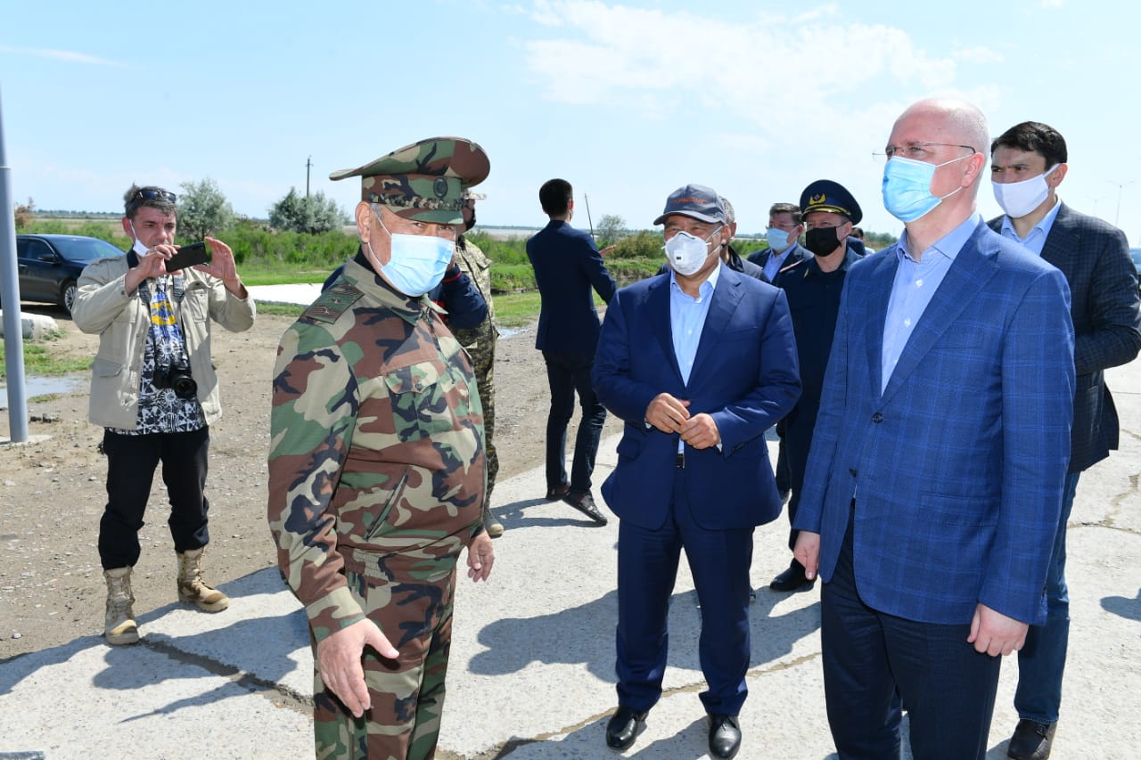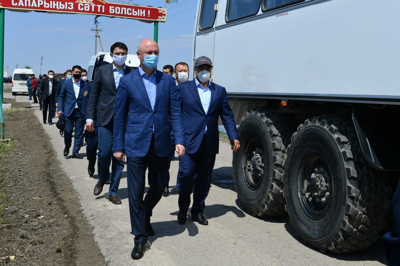 После облета затопленных территорий совместно с акимом Туркестанской области У. Шукеевым и узбекскими коллегами, госкомиссия отправилась в затопленные поселки Оргебас и Фердоуси.