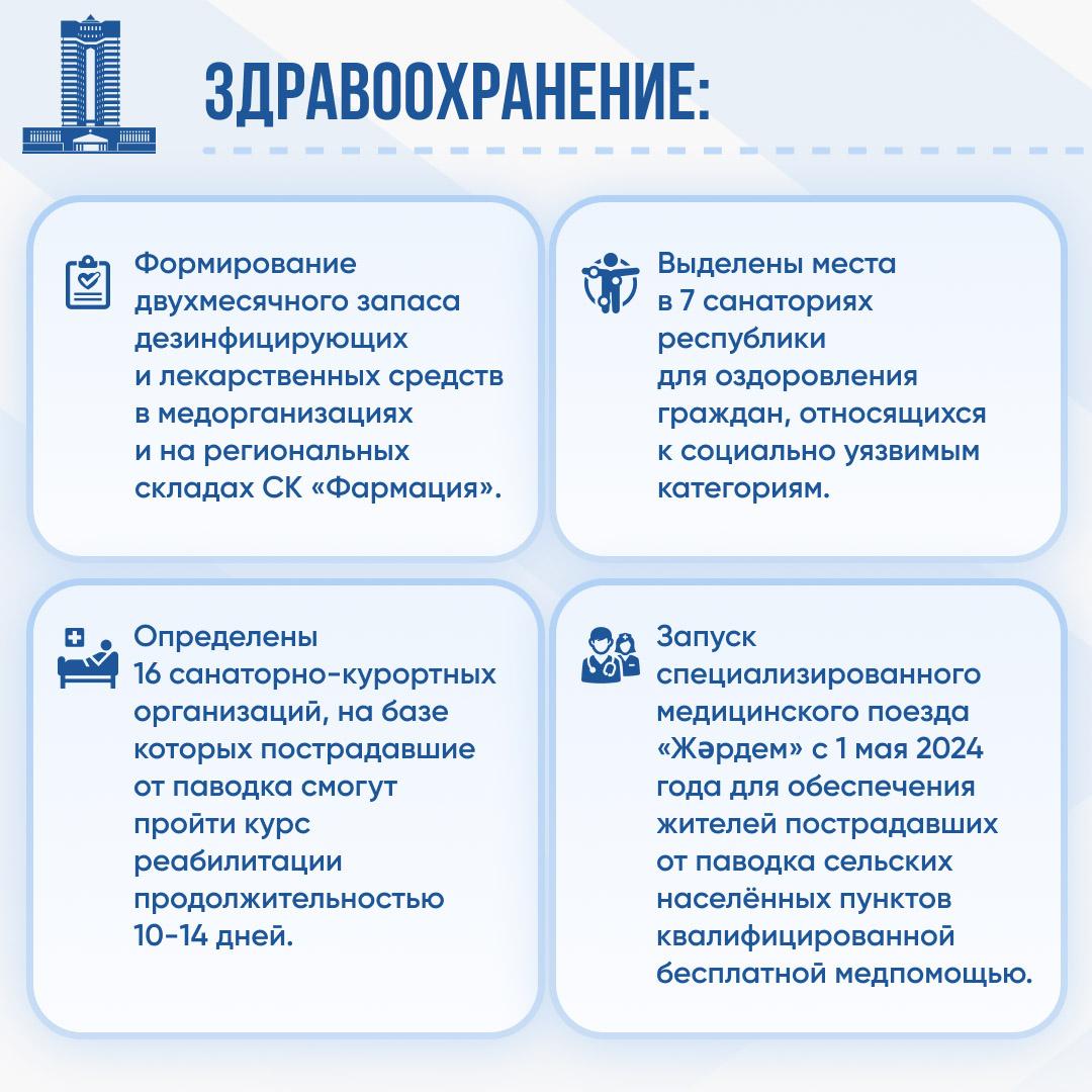с 1 мая будет запущен специализированный медицинский поезд «Жәрдем» для обеспечения жителей квалифицированной бесплатной медицинской помощью. С учетом паводковой ситуации услугами медпоезда будут охвачены жители пострадавших сельских населенных пунктов.