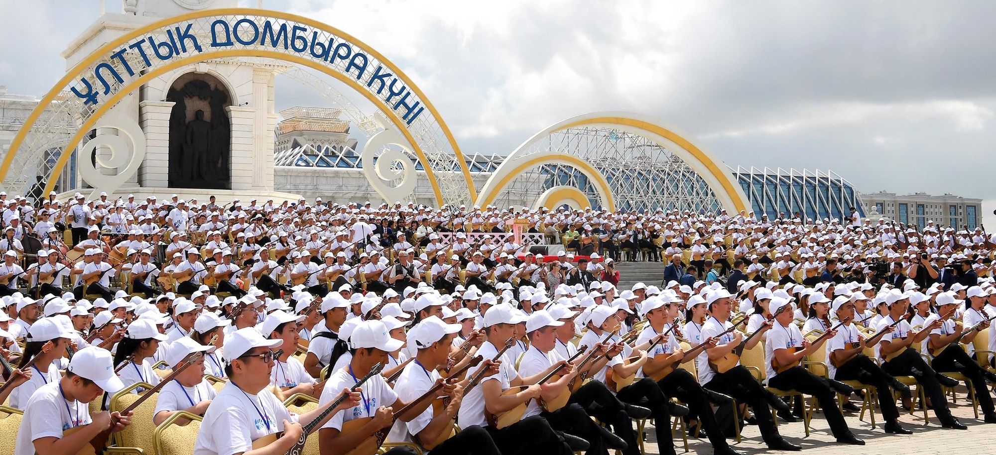 В ходе мероприятия на площади «Қазақ елі» более 2000 музыкантов в едином оркестре под руководством дирижера Айткали Жайымова исполнили на домбре знаменитые казахские кюи.