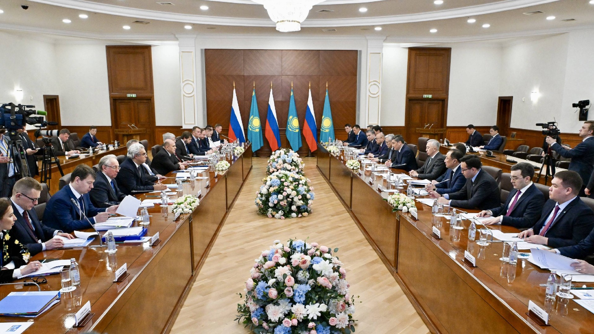 Премьер-министр Республики Казахстан Олжас Бектенов и Председатель Правительства Российской Федерации Михаил Мишустин, прибывший в Казахстан с рабочим визитом, провели двусторонние переговоры. Рассмотрены вопросы торгово-экономического, инвестиционного сотрудничества, реализации проектов в сфере промышленности и энергетики, транспорта, а также взаимодействие в области экологии.