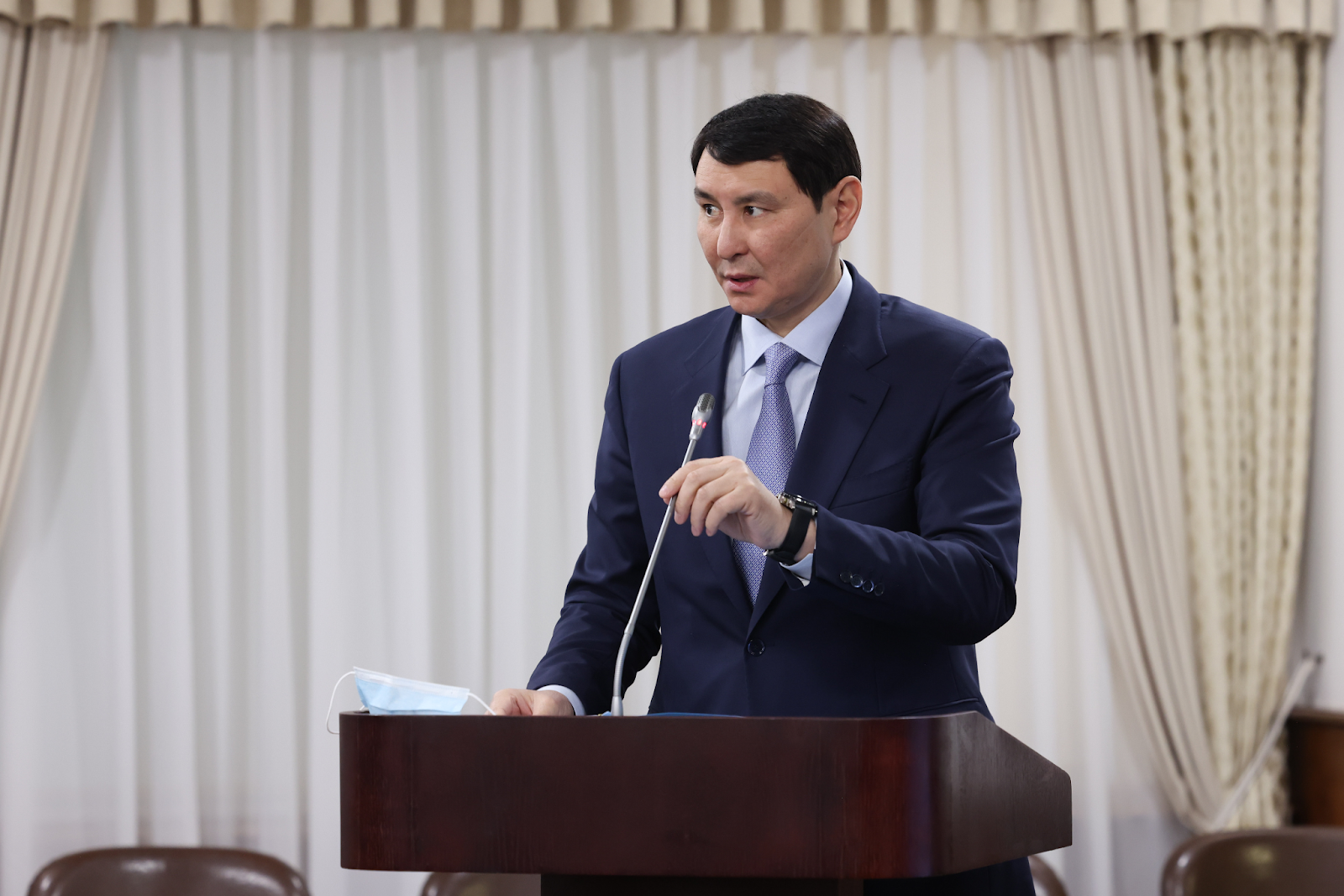 С первым докладом по теме выступил министр национальной экономики Алибек Куантыров.