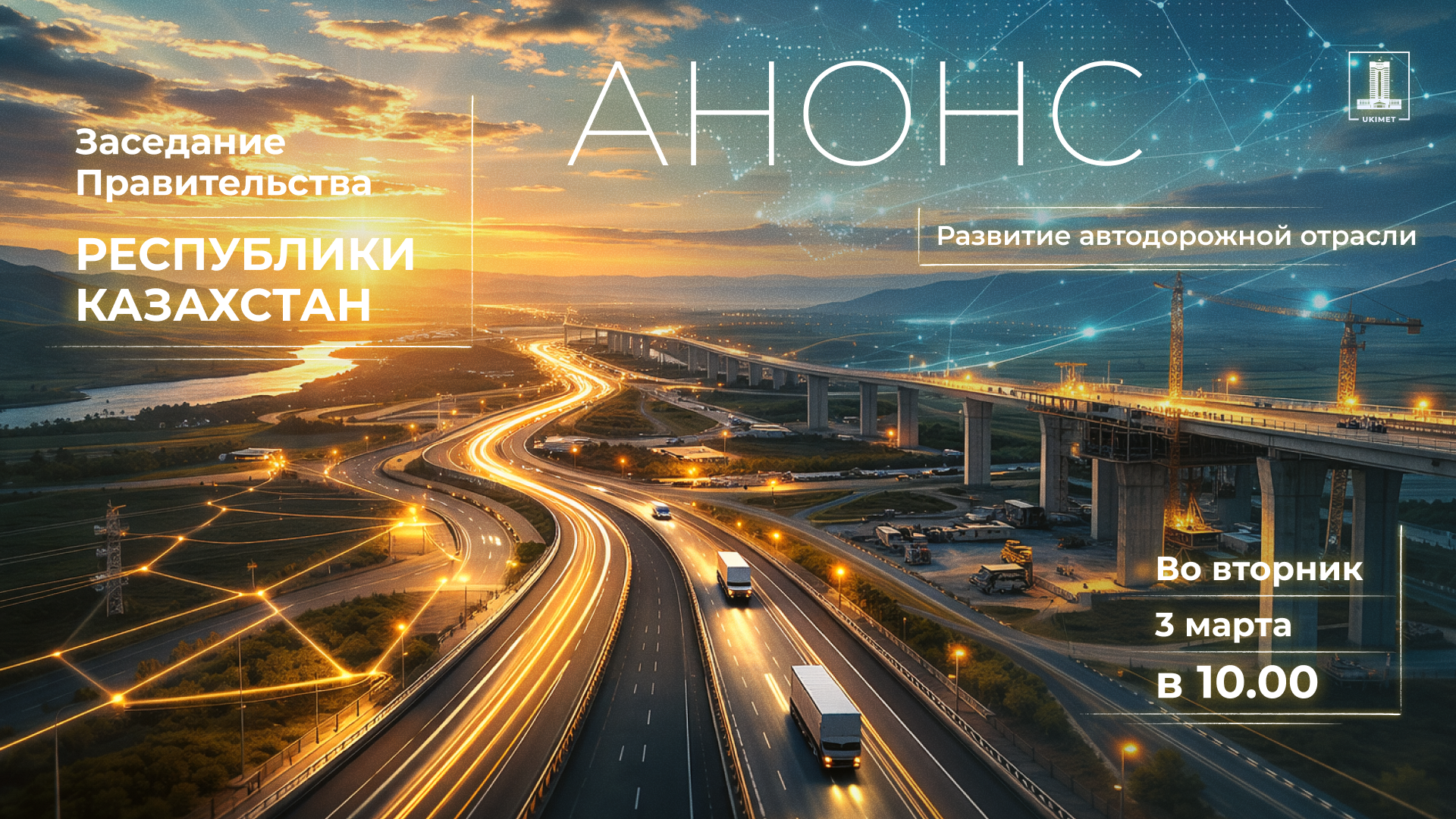 генерального директора РГП «Национальный центра качества дорожных активов» Булатбека Айтбаева.Заседание Правительства будет транслироваться в режиме онлайн на сайте PrimeMinister.kz, официальном YouTube-канале, в социальной сети Facebook, на Telegram-канале UKIMET.