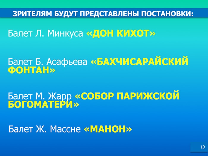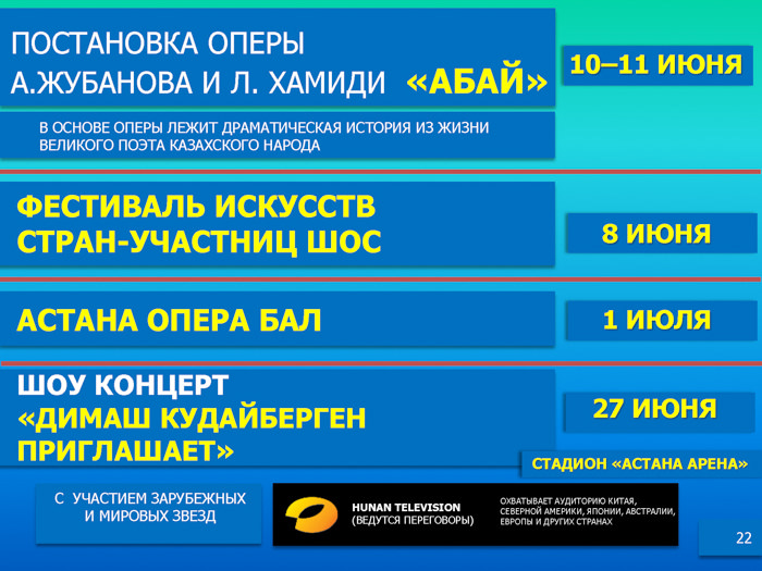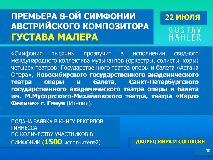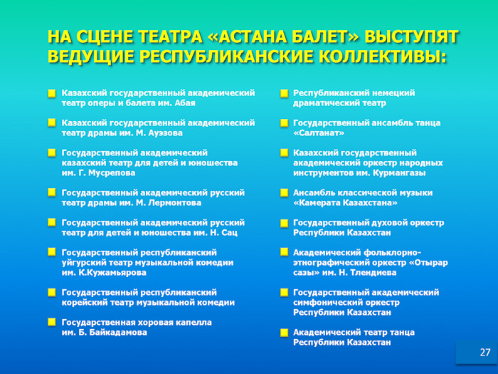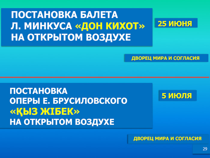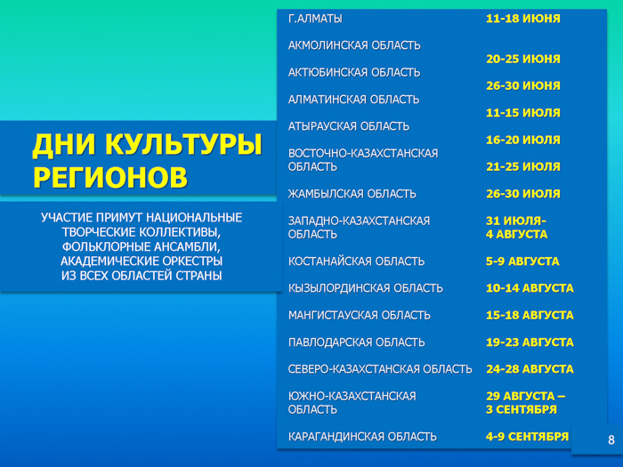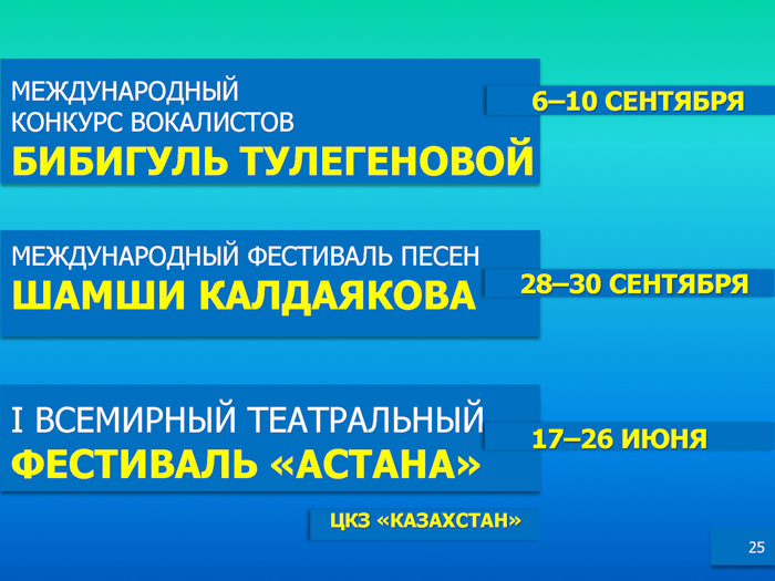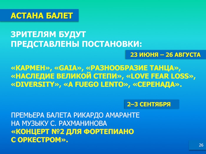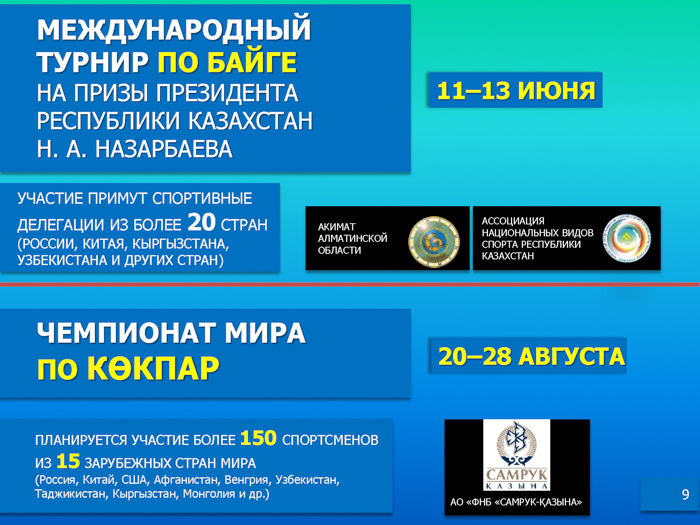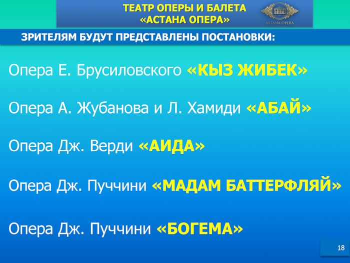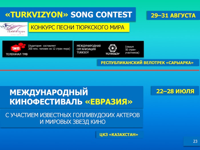 Подробнее - в информационных материалах, предоставленных Министерством культуры и спорта РК.