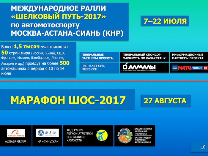 Кроме того, по территории Казахстана пройдет маршрут Международного ралли «Шелковый путь - 2017» по автомотоспорту.
