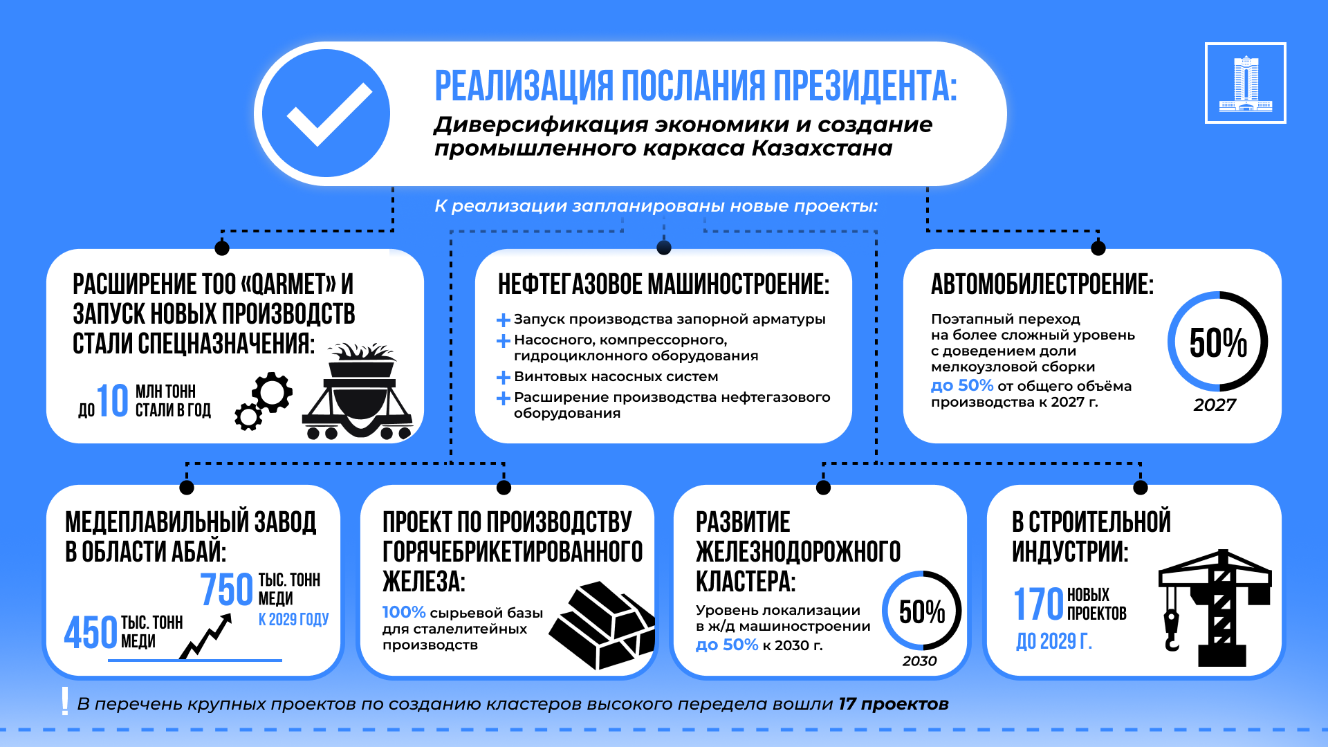 #Инвестиции #Обрабатывающая промышленность #Послание Главы государства #ЭкономикаОставайтесь в курсе событий Премьер-министра и Правительства Казахстана — подписывайтесь на официальный Telegram-канал