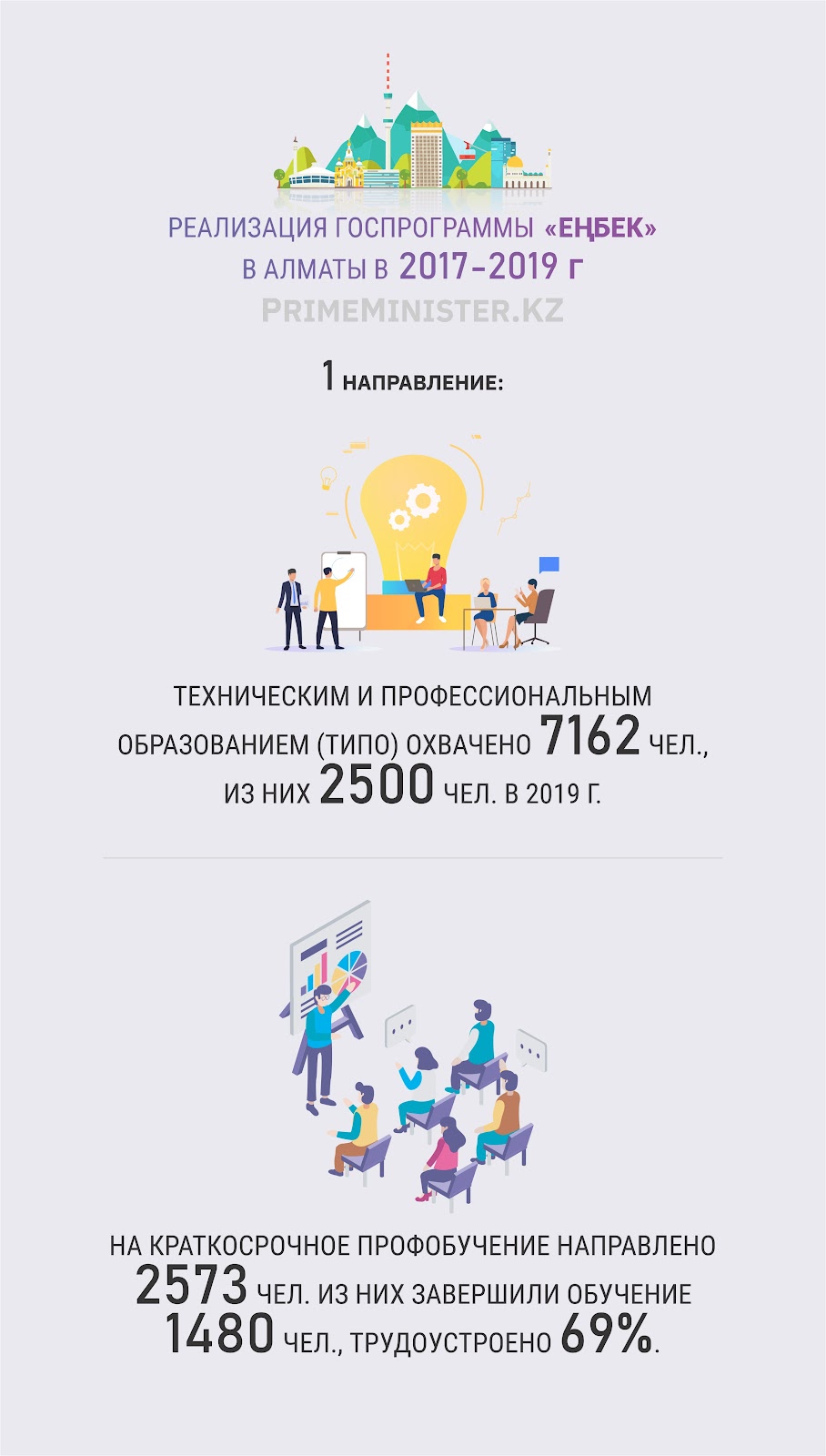 В рамках первого направления техническим и профессиональным образованием с 2017 года охвачено 7162 чел., из них 2500 чел. — с 2019 г.