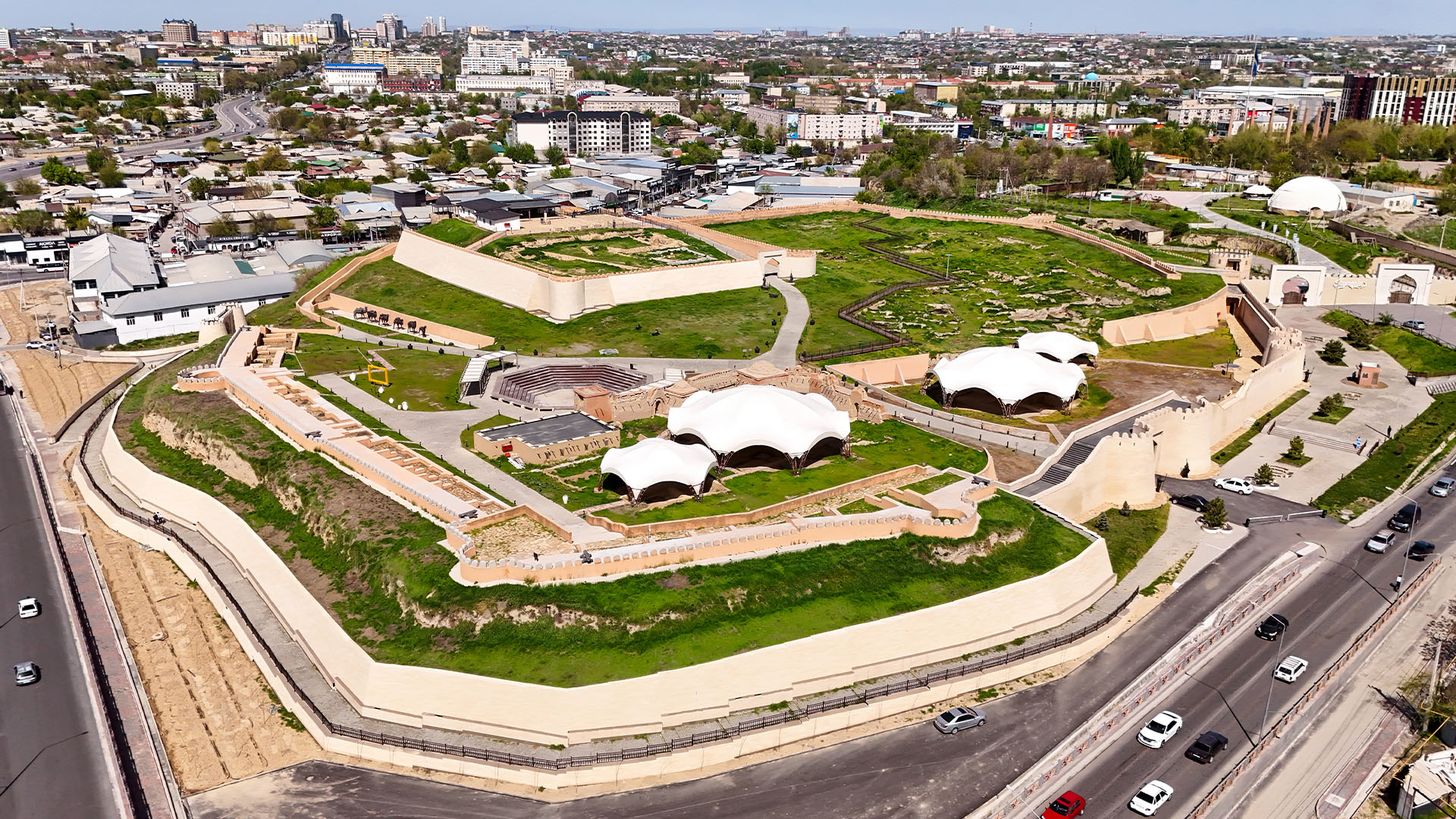 На месте бывшего полигона площадью 45 га создаётся «Экопарк» с общественными пространствами. Параллельно реализуется проект «Omir Shymkent» – туристический кластер на берегу водохранилища Бадам (53 га) с глэмпингом, отелем и инфраструктурой отдыха. Также модернизируется этноаул в комплексе «Шымкала».