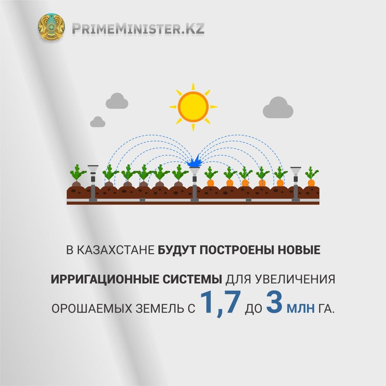 Документ предусматривает строительство новых ирригационных систем для увеличения орошаемых земель с 1,7 до 3 млн га, увеличение протяженности облицованных магистральных и распределительных каналов с 3423 до 19 тыс. км.