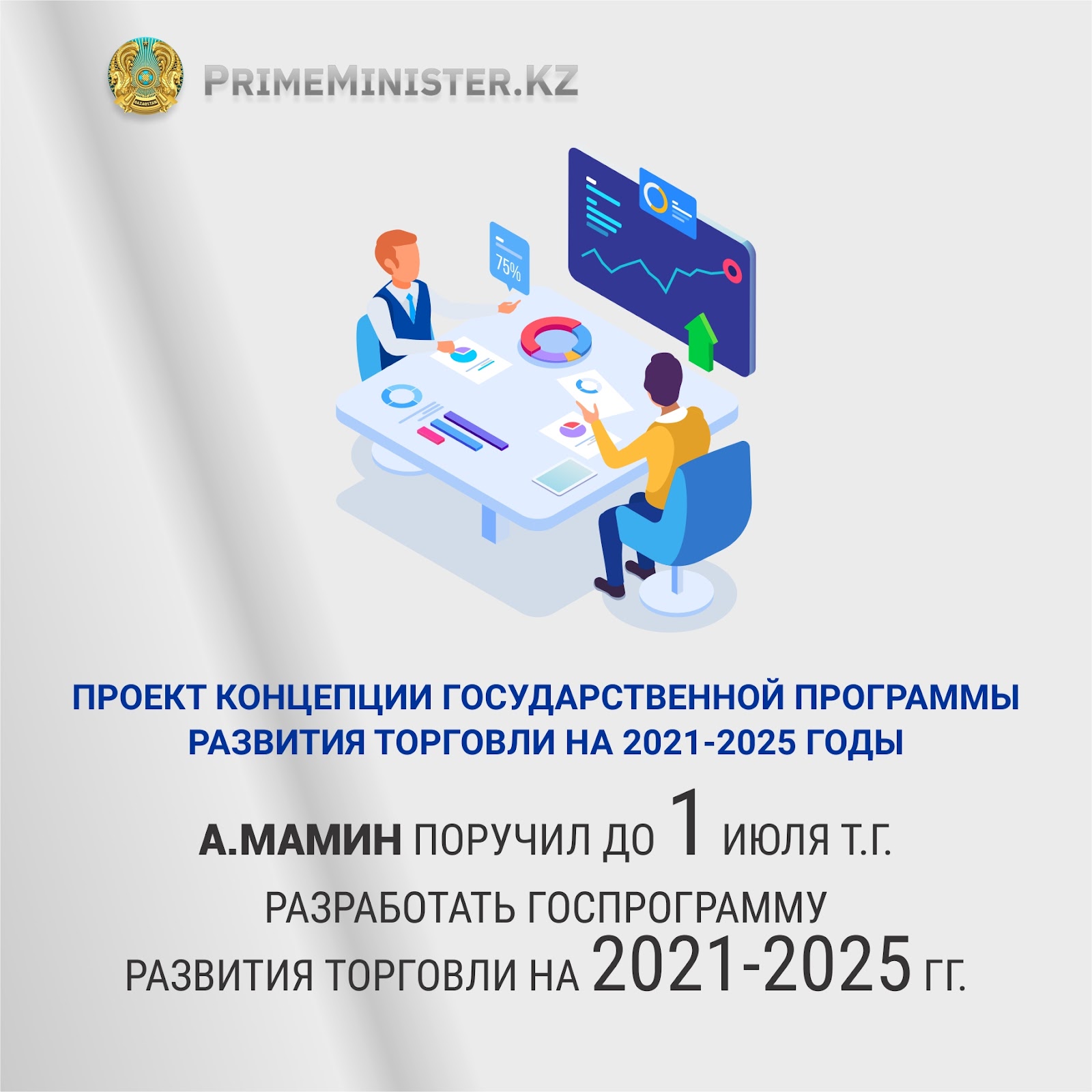 Глава Правительства РК поручил обеспечить внесение проекта Госпрограммы в Правительство, центральным и местным исполнительным органам — принять активное участие в разработке документа.