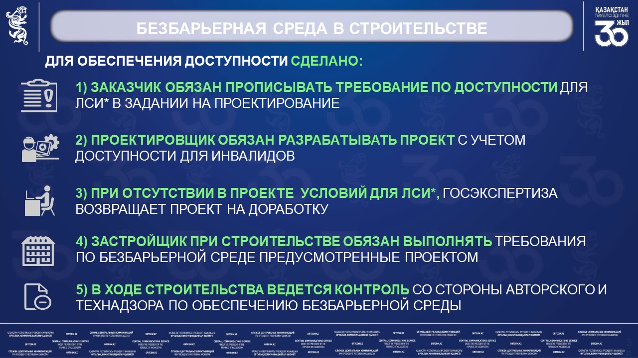 Создание безбарьерной среды является одной из приоритетных задач министерства по прямому поручению Елбасы.