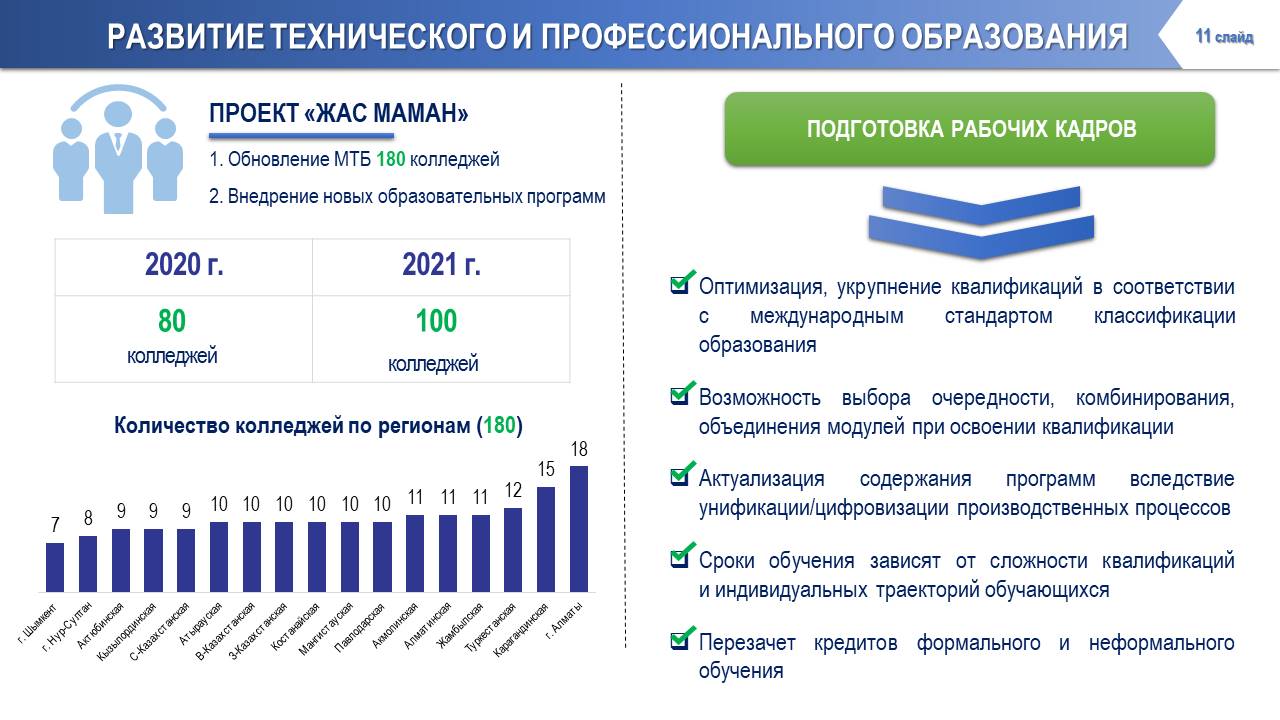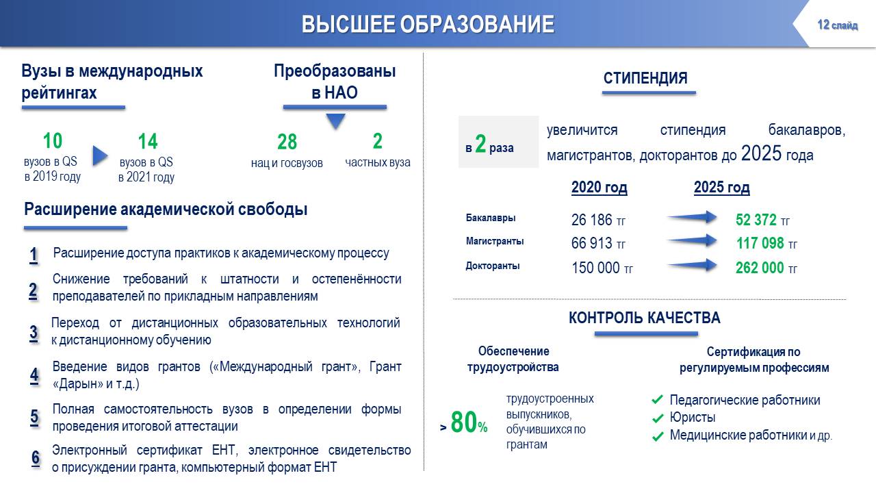Также очень важно, что теперь государственный заказ распределяется по потребностям в разрезе специальностей. Если есть необходимость подготовить 20 медицинских работников, то выделяются квоты соответственно на 20 мест. Это позволит обеспечивать страну самыми необходимыми кадрами.