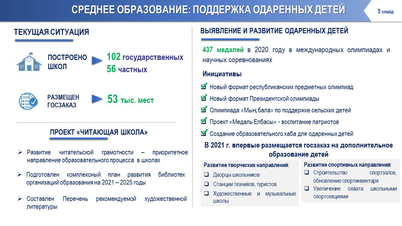 В 2020 году 437 медалей завоевали казахстанские ученики на международных олимпиадах и научных соревнованиях. В целом, несмотря на пандемию и трудности, одаренные ученики показывают хорошие результаты.