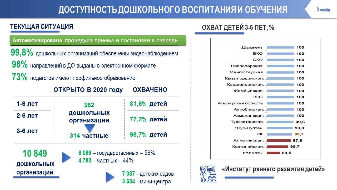 «Мы подготовили новую модель дошкольных организаций, дошкольного обучения и образования. Именно в этом возрасте основным доминирующим видом деятельности является игровой вид. Мы пересмотрели модель, много специалистов участвовали. Мы будем пересматривать государственные, общепринятые стандарты и типовые учебные планы», — пообещал А. Аймагамбетов.