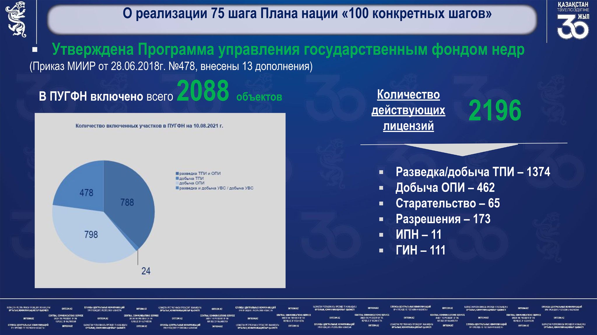 С принятием Кодекса «О недрах и недропользовании» в реализацию 75 шага внедрены ряд ключевых новшеств, позволивших улучшить инвестиционный климат. Изменения направлены на стимулирование недропользования и снятие административных барьеров.