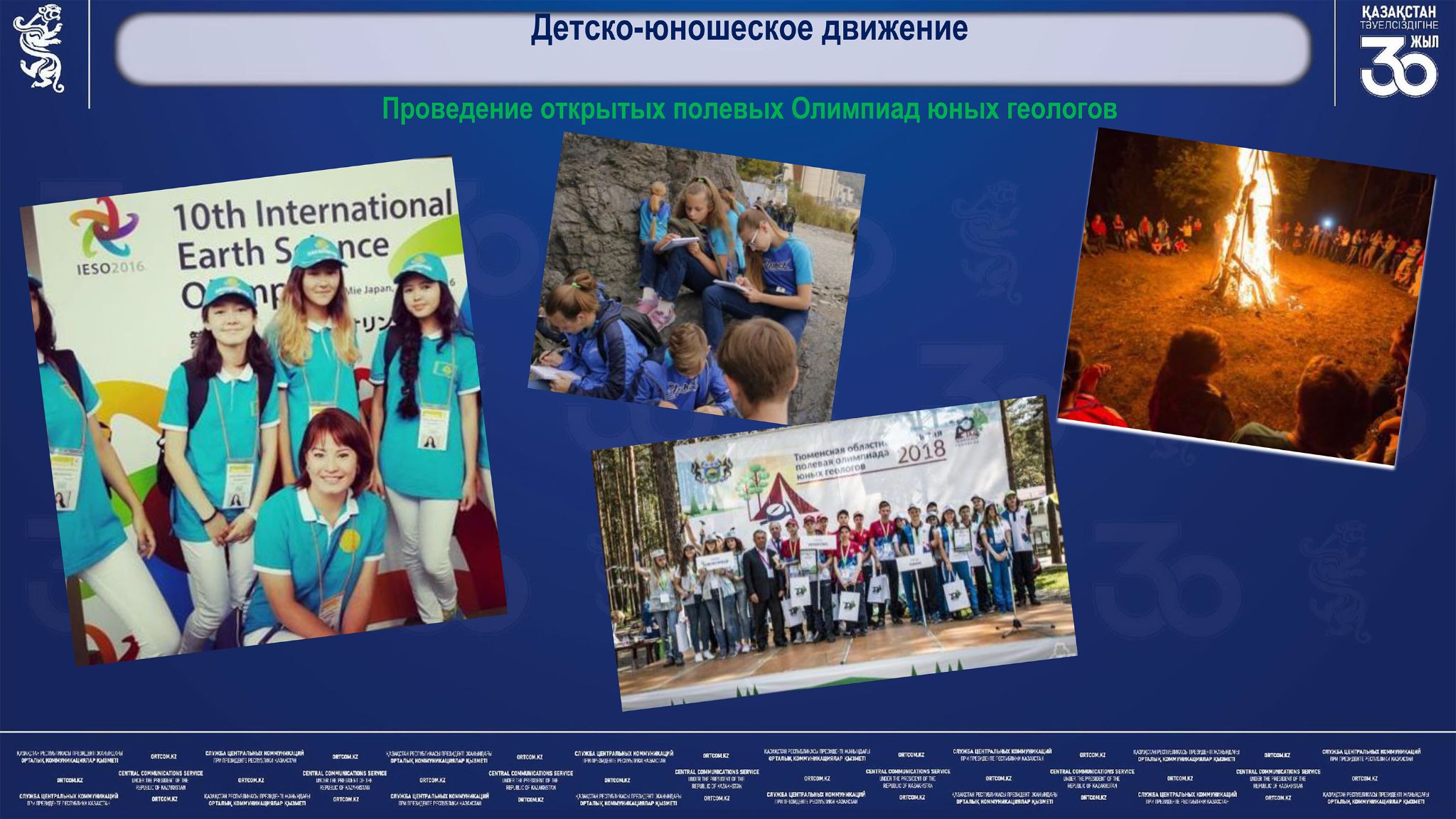 Лучшие команды Казахстана ежегодно принимают участие и занимают призовые места в зарубежных олимпиадах юных геологов и международной олимпиаде наук о земле (IESO). Таких одаренных детей нужно поддерживать, так как зачастую интерес школьных лет превращается в профессию. По данным фонда, на сегодняшний день более 50 детей выбрали профессию геолога.