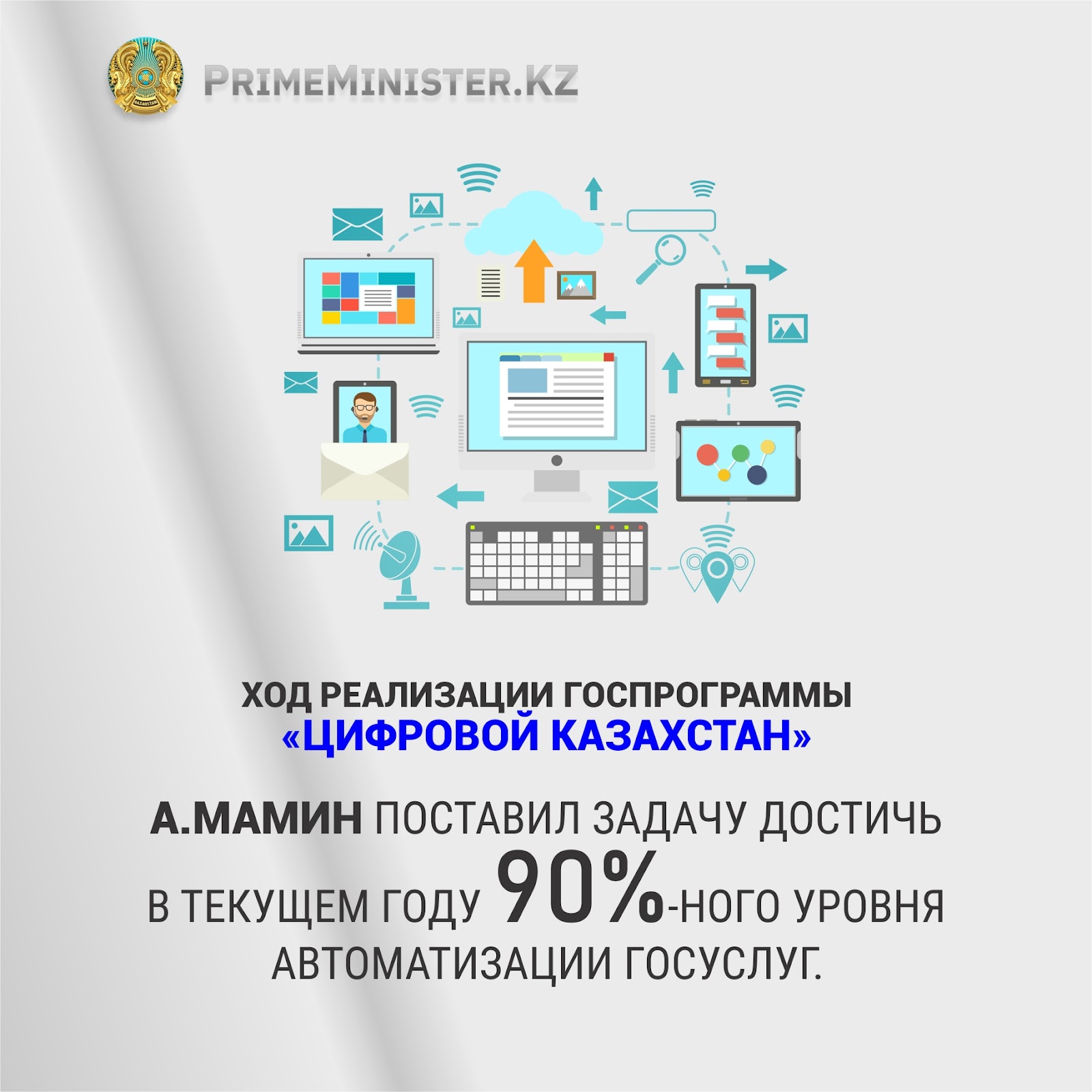 Аскар Мамин поручил в текущем году достичь 90%-ного уровня автоматизации госуслуг
