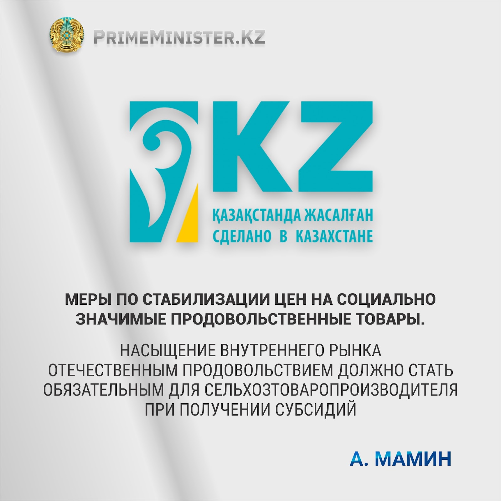 В ходе рассмотрения первого вопроса Премьер-Министру А. Мамину доложили о проводимой работе по мониторингу цен и мерам реагирования.