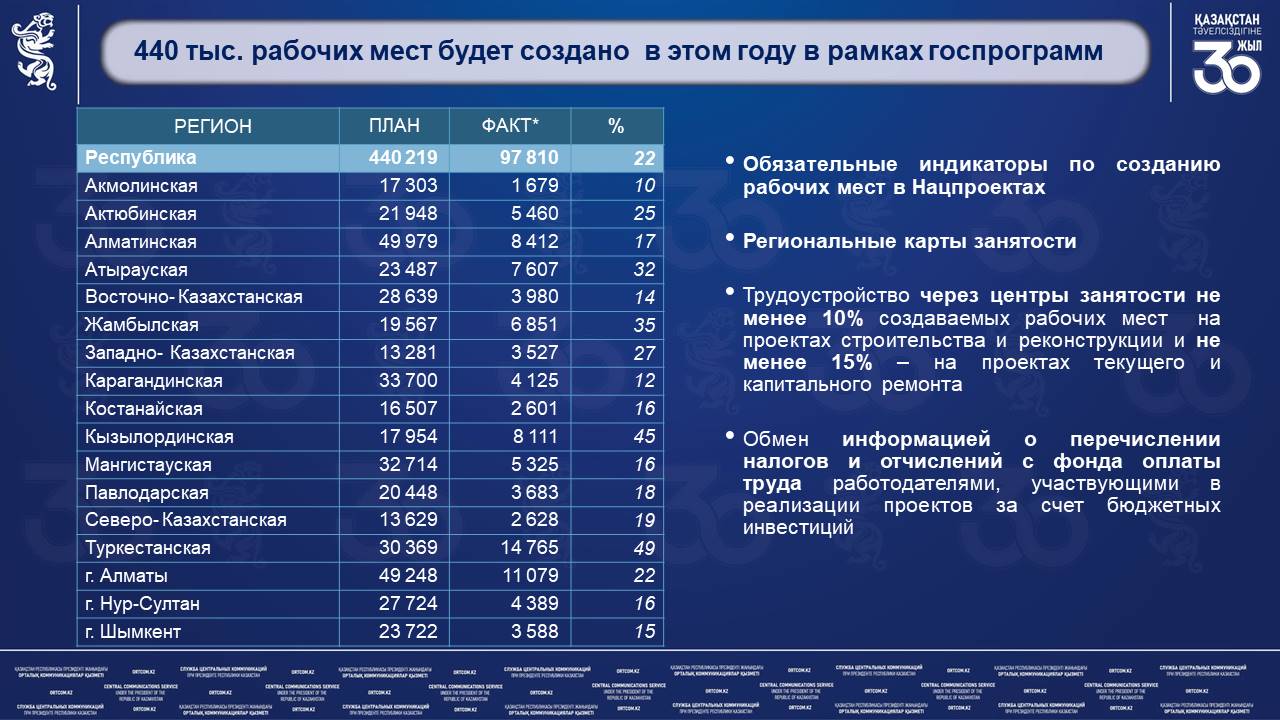 «На реализацию Госпрограммы развития продуктивной занятости и массового предпринимательства «Еңбек» дополнительно выделено 50 млрд тенге, а общие расходы составили 176,1 млрд тг. Мы увеличили субсидирование рабочих мест по молодежной практике и общественным работам и расходы на гранты для развития бизнеса», — сообщил вице-министр.