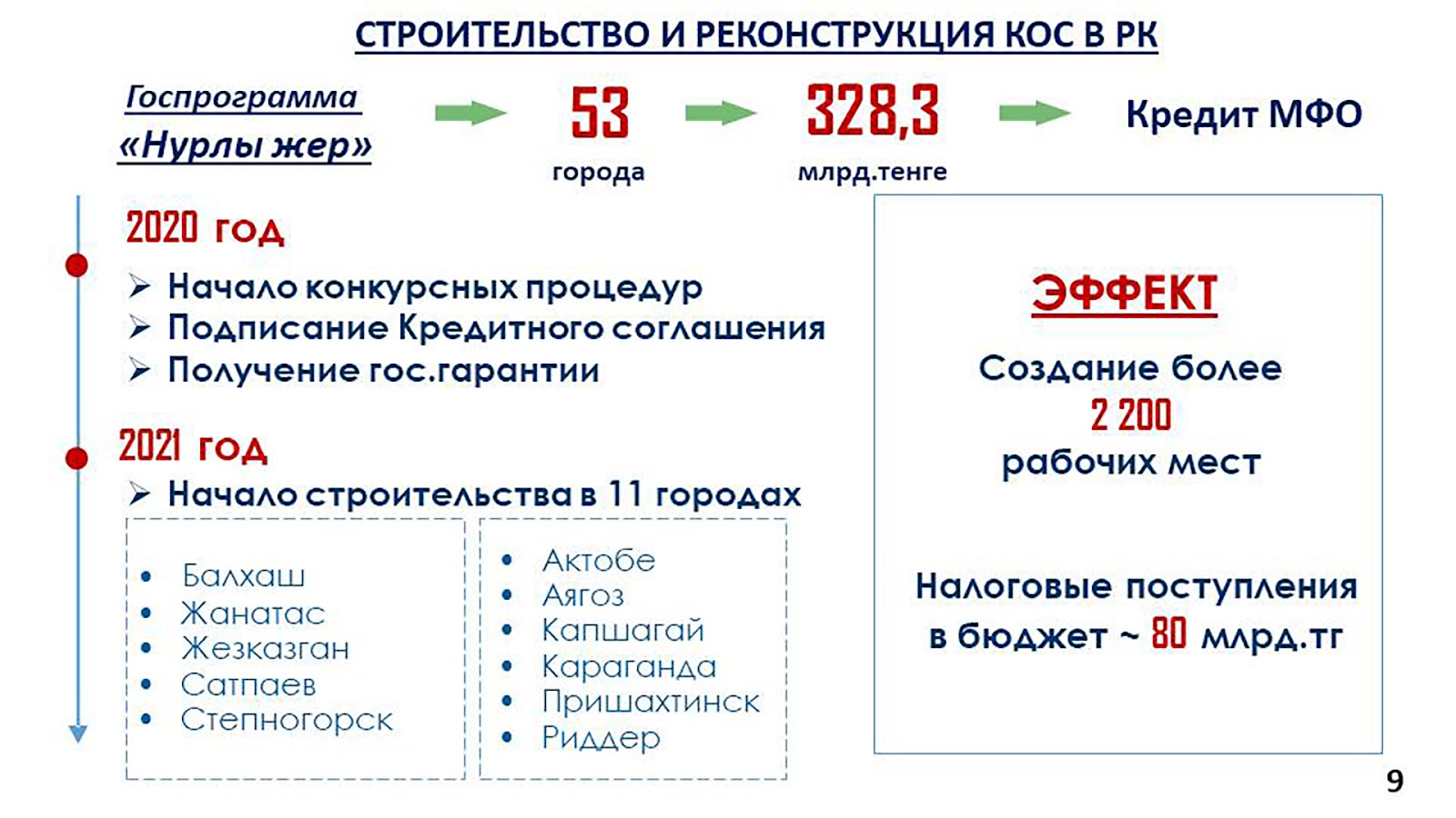 8 жилых домов на 448 квартир в административно-деловом центре будут сданы в эксплуатацию в декабре 2020 года. Кроме того, с рынка будет закуплено более 696 квартир на 8 млрд тенге.
