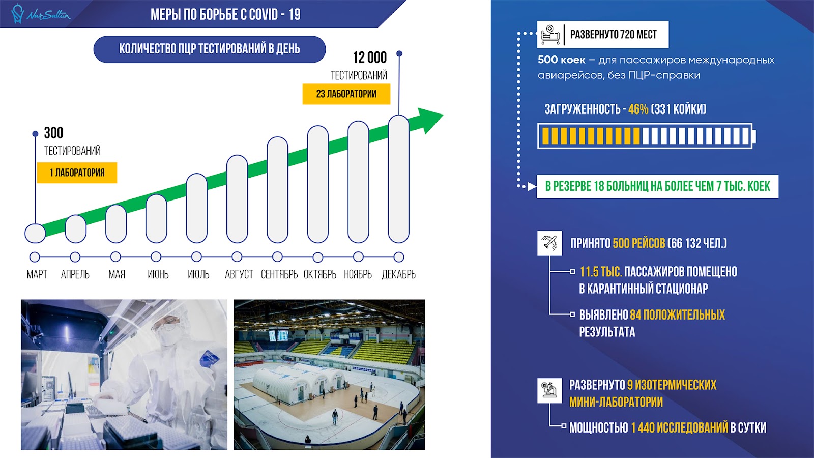 Количество лабораторий по забору биоматериала на COVID-19 увеличено до 21 с общей мощностью более 12 тыс. исследований в сутки. На сегодня проведено более 757 тыс. лабораторных исследований путем ПЦР-тестирования.