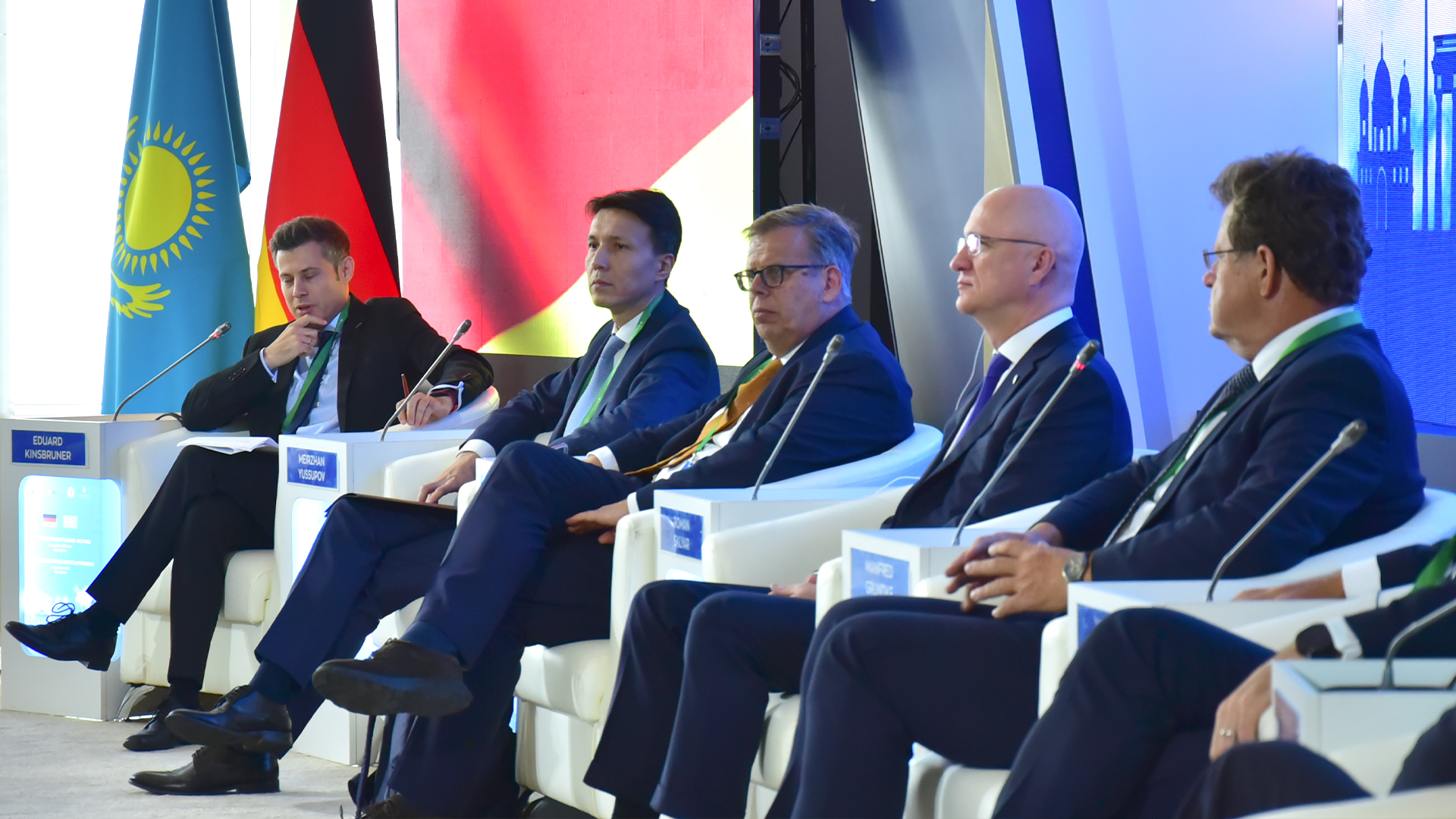 В ходе пленарной сессии бизнес-форума выступили глава внешней торговли, член правления Ассоциации торгово-промышленных палат ФРГ Фолькер Трайер, председатель правления АО «НК «KAZAKH INVEST» Меиржан Юсупов и спикер рабочей группы по Центральной Азии Восточного комитета германской экономики Манфред Грундке.