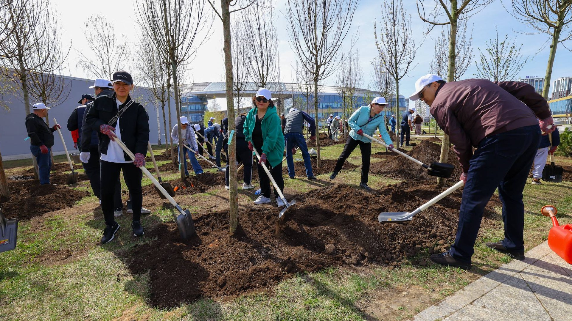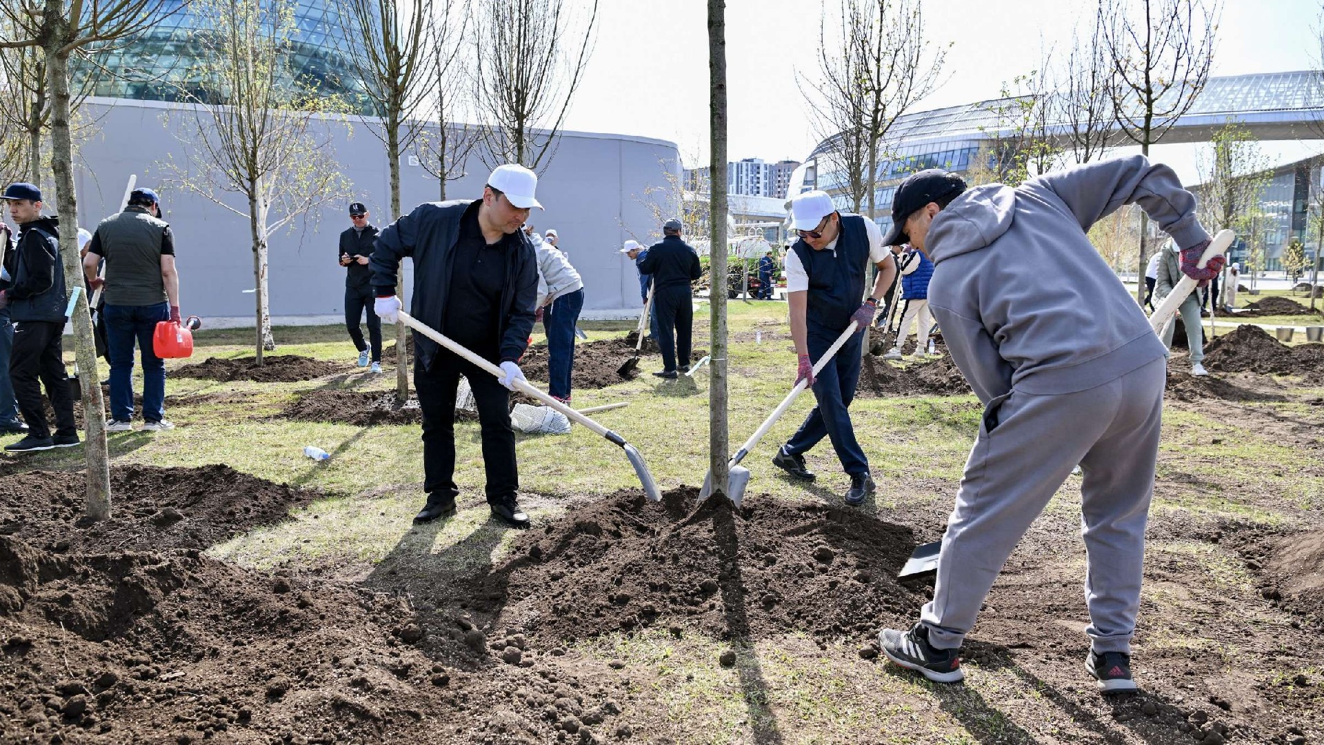 В ходе субботника на территории делового комплекса EXPO было высажено 130 деревьев, в том числе ива белая, липа мелколистная и клен остролистный.